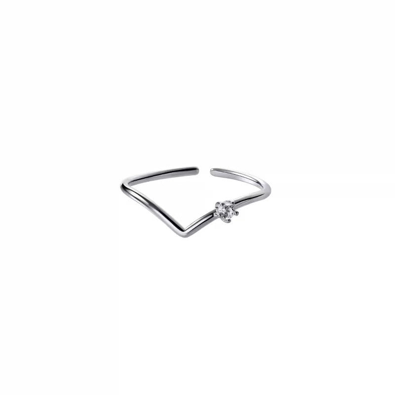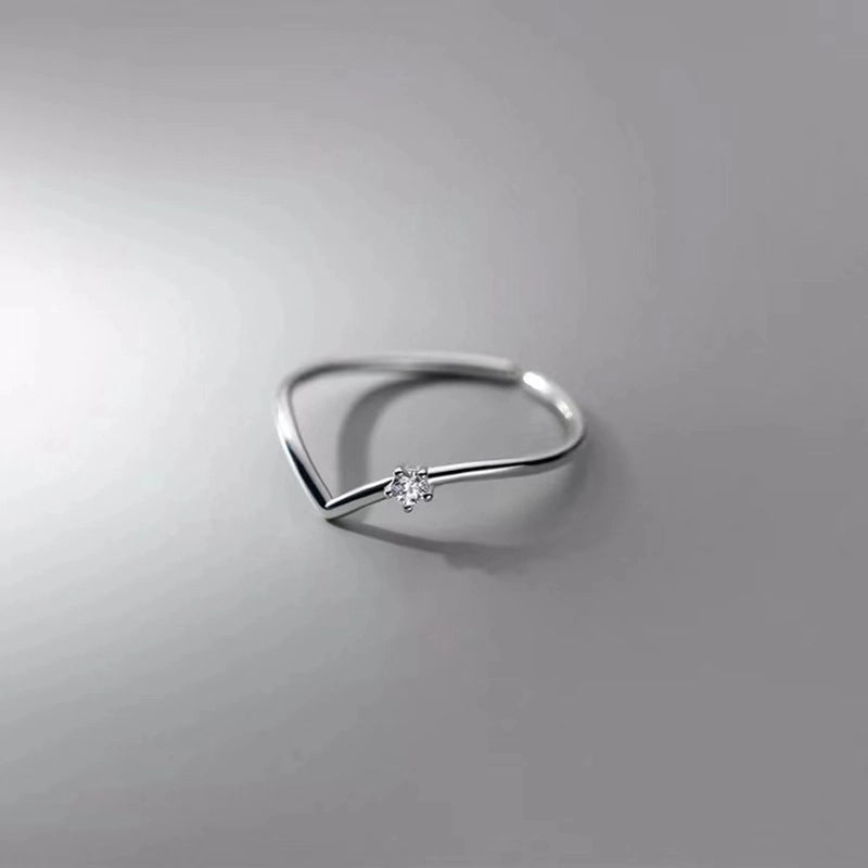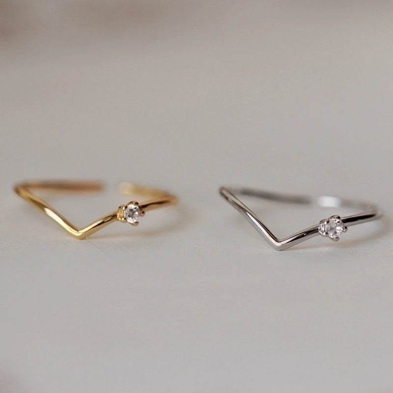 Minimalist V Shape Sterling Silver Inlay Rhinestones 18k Gold Plated Open Ring