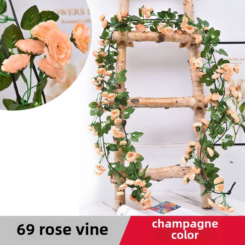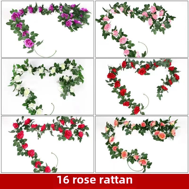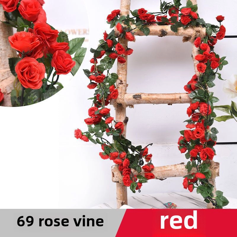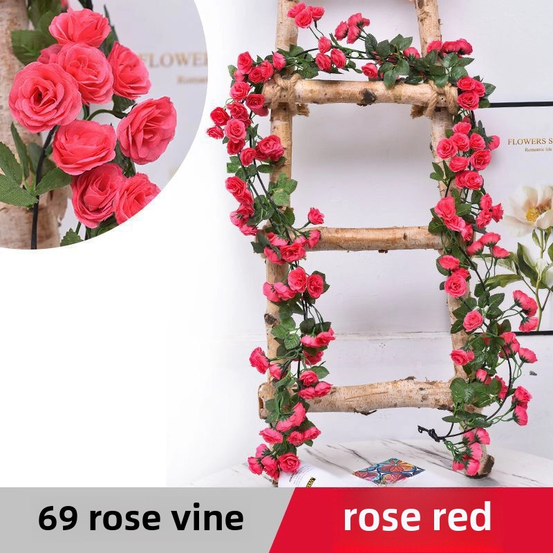 Simulation Rose Vine Wedding Fake Flower Decorative Vine Flower Wall Hanging Flower Air Conditioning Duct Ugly Decorative Ceiling Vine