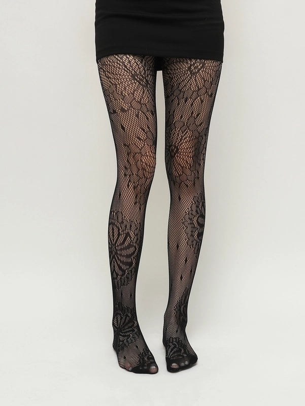 Halloween Skull Nylon Hollow Out Over The Knee Socks