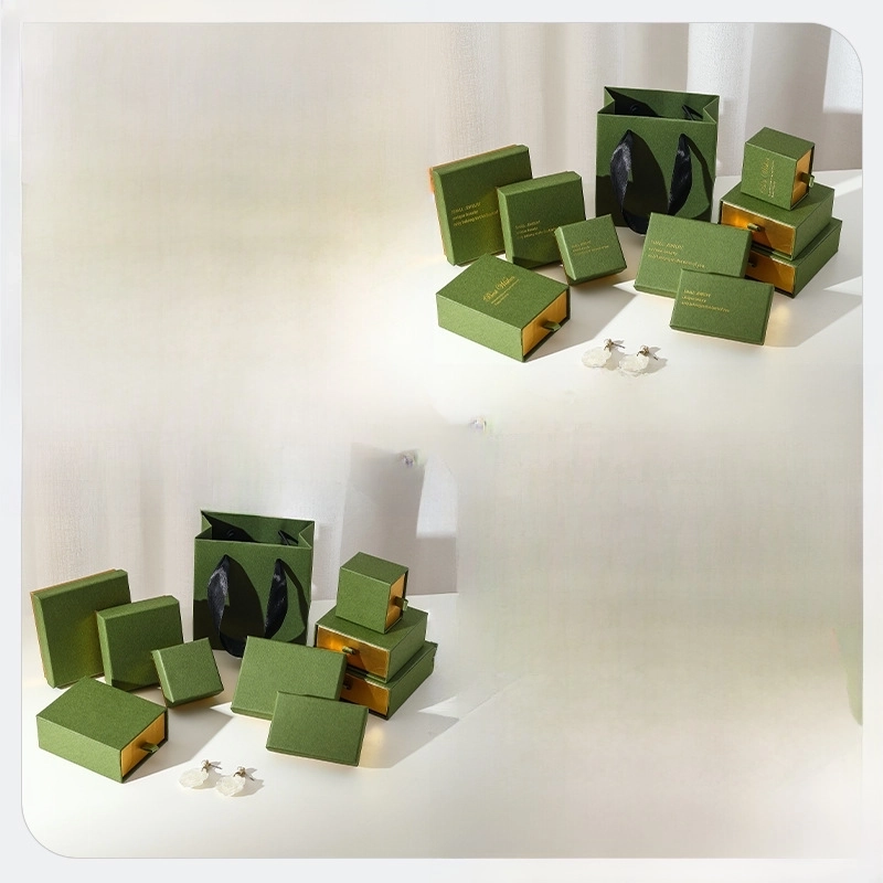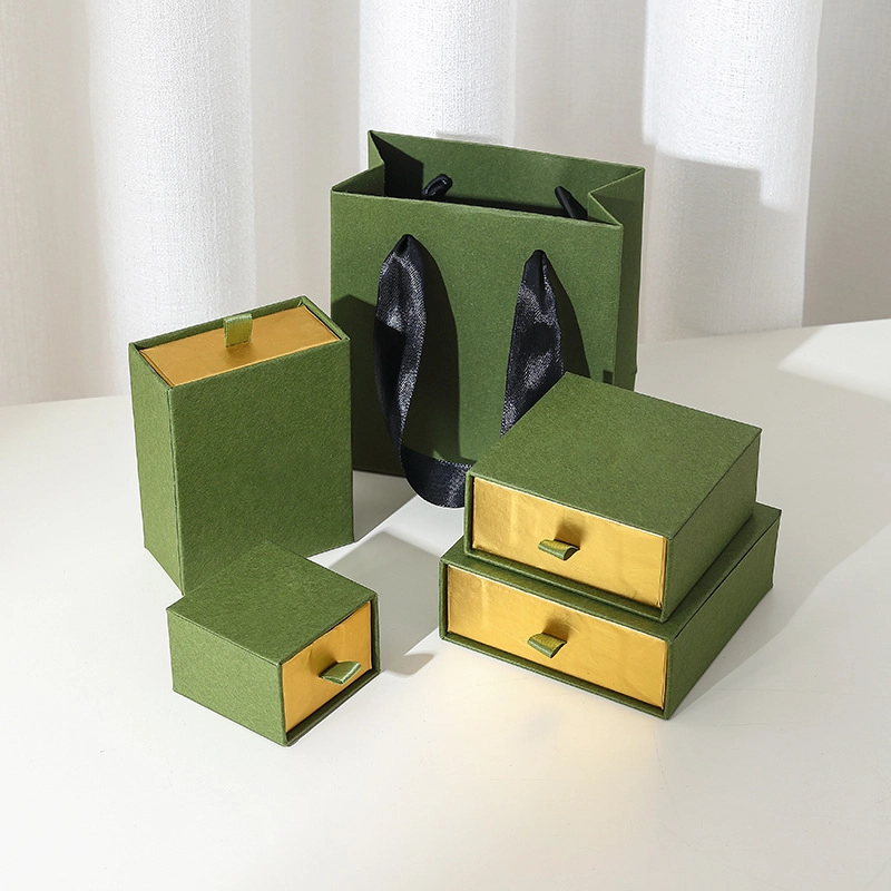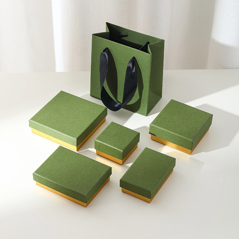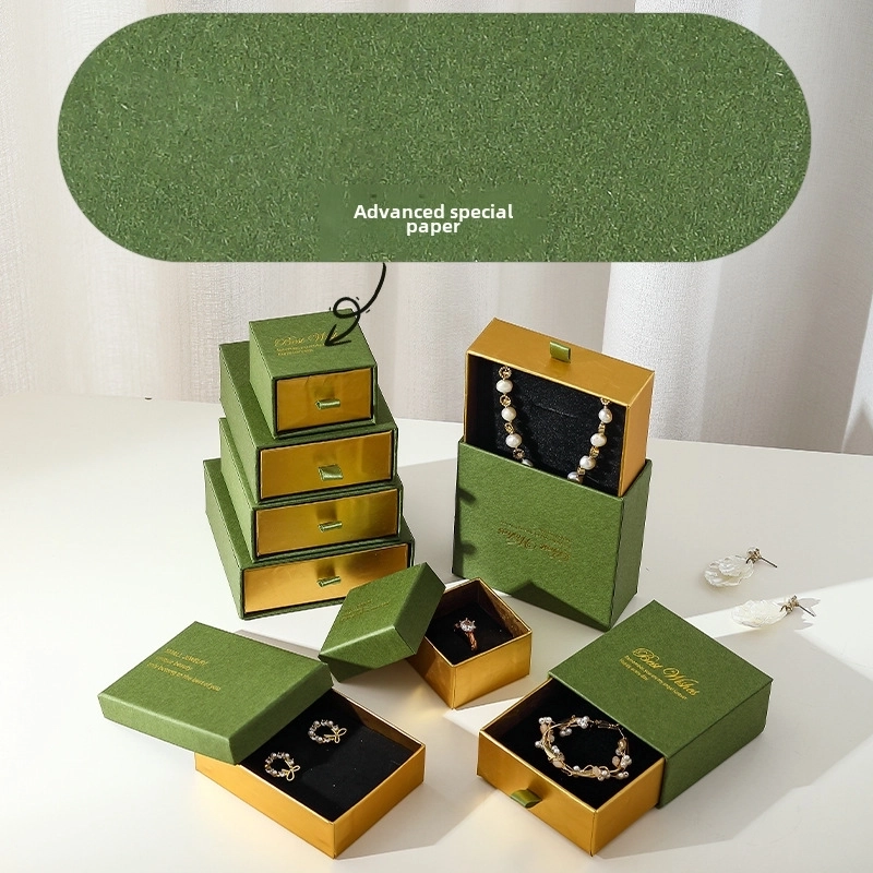 50 Pieces Small Batch Custom LOGO Retro Green Jewelry Packaging Box High-end Light Luxury Heaven And Earth Cover Ring Box Jewelry Drawer Box
