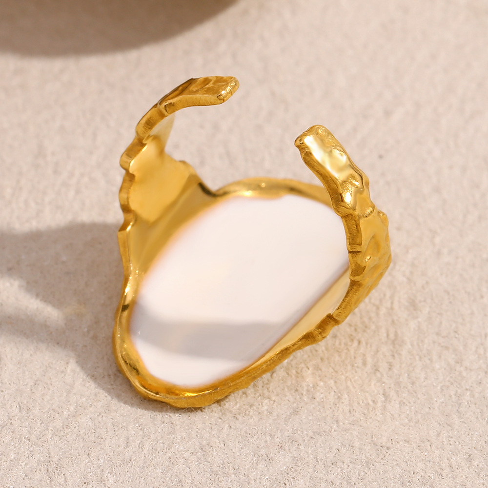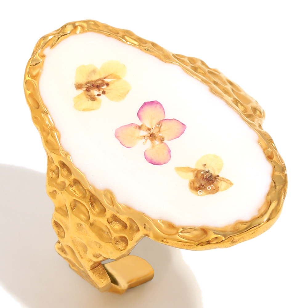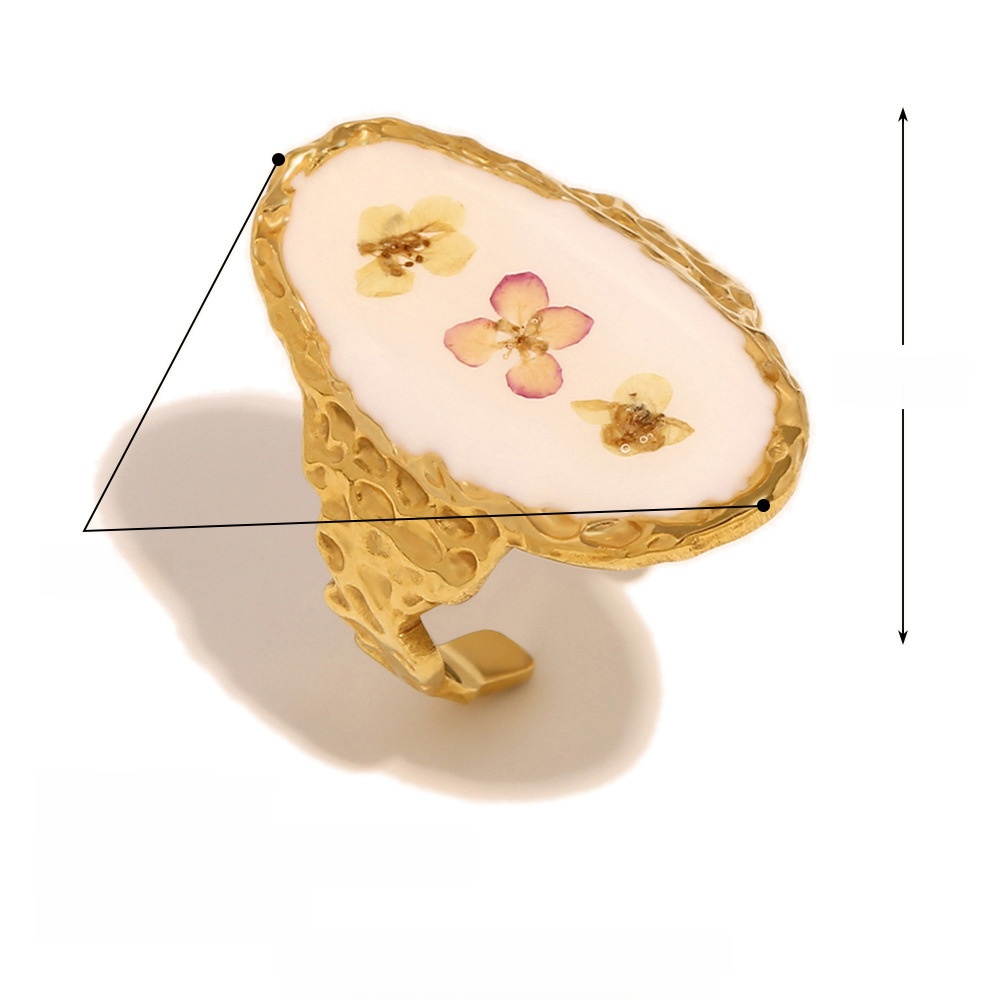 Small French All-Match Stainless Steel 18K Gold Plated Three Dried Flowers Open Ring For Women