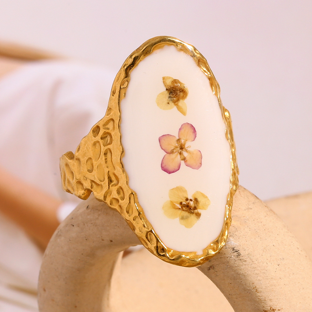 Be the first to review “Small French All-Match Stainless Steel 18K Gold Plated Three Dried Flowers Open Ring For Women” Cancel reply