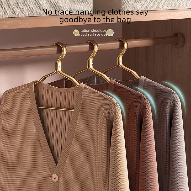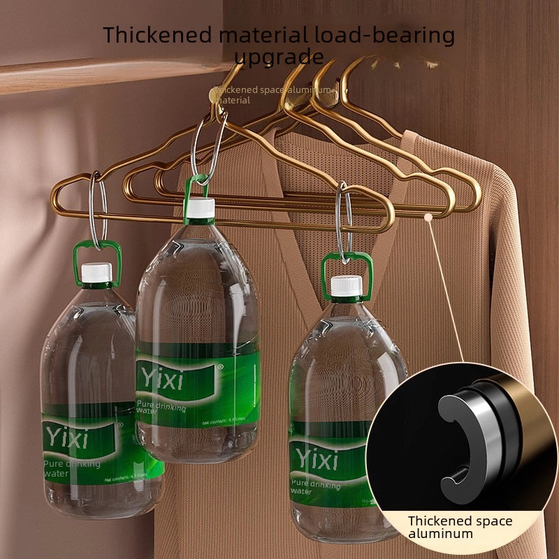 Space Aluminum Alloy Hanger Household Hanging Clothes Seamless Clothes Support Anti-slip Anti-shoulder Angle Light Luxury Metal Adult Drying Rack