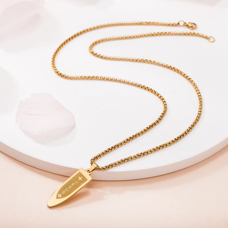 Stainless Steel Cross Shelf Pendant Sweater Chain Men’s Trendy 18K Gold Plating Bullet Titanium Steel Necklace Neck Accessories