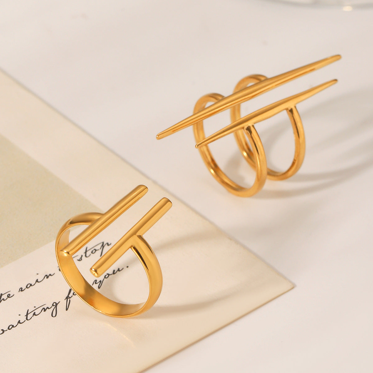 Stainless Steel Line Open Ring Hand Jewelry Niche Design Irregular Titanium Steel Ring Ring
