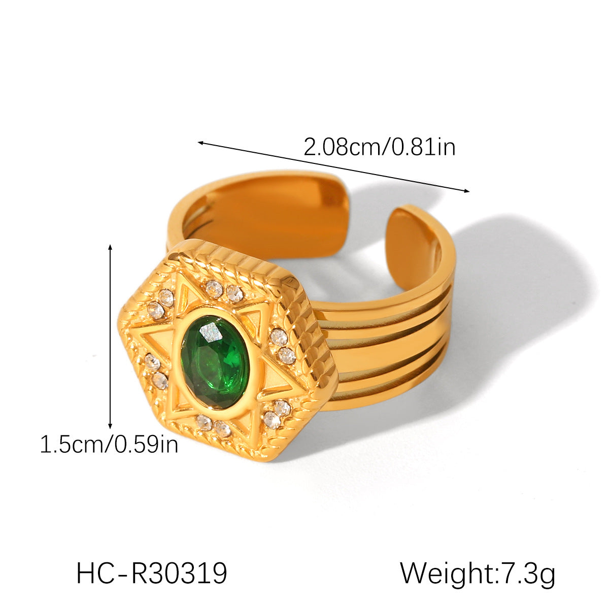 304 Stainless Steel 18K Gold Plated Elegant Retro Plating Geometric Leaf Heart Shape Open Rings