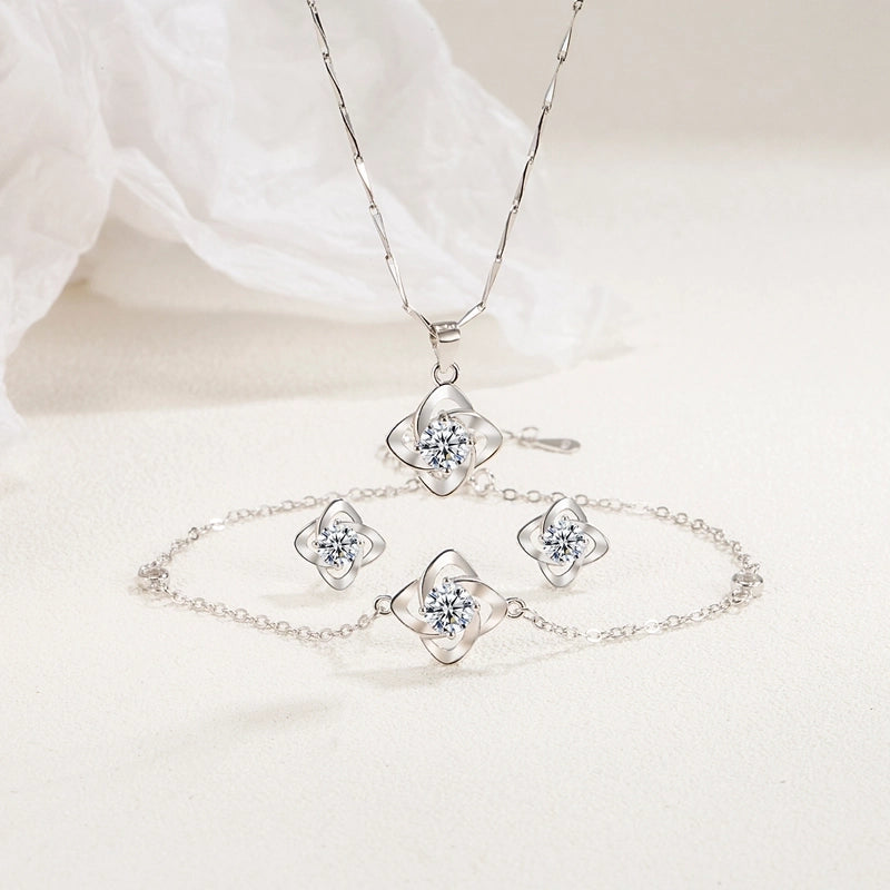 Sterling Silver S925 Clover Jewelry Suit Necklace Female Korean Style Fresh Send Girlfriend Valentine Gift Simple Jewelry