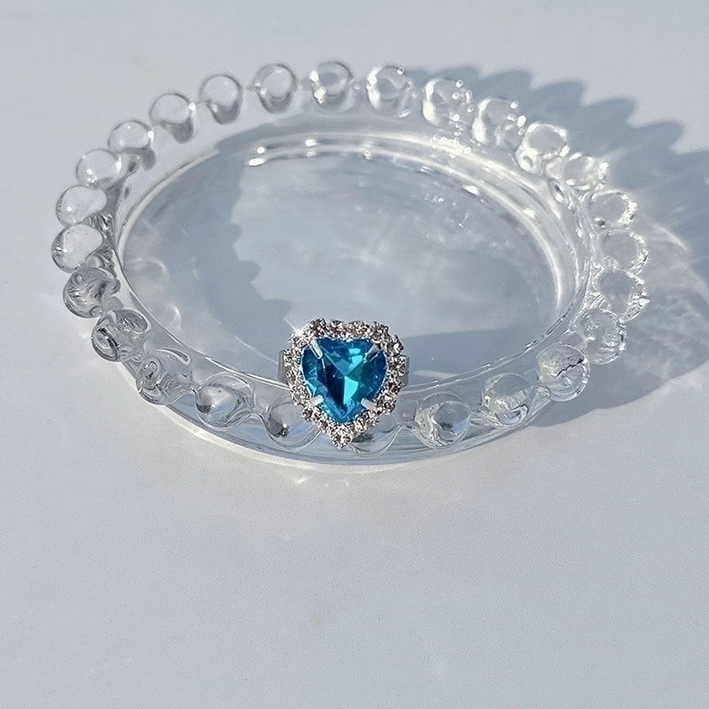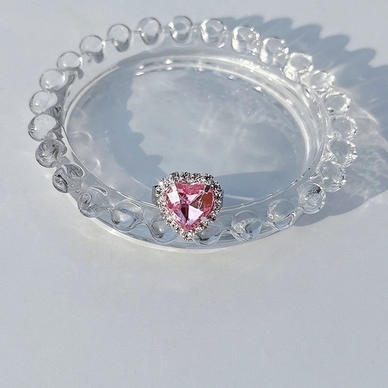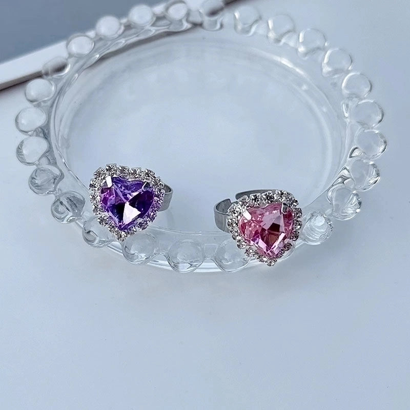 Sweet Heart Shape Titanium Steel Inlay Zircon Rings