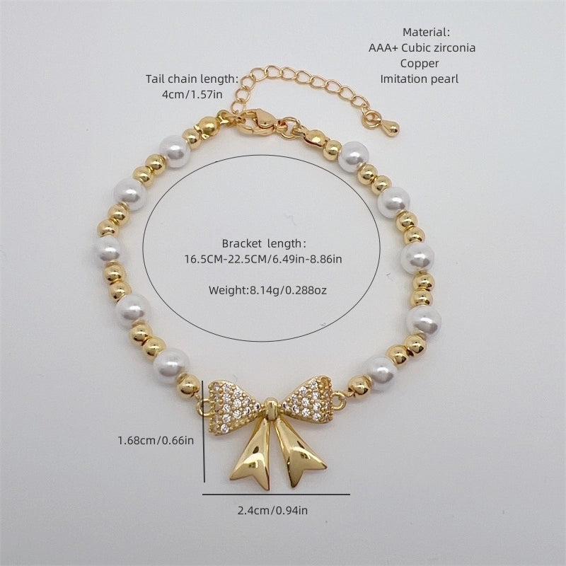 2 Pieces Sweet Minimalist Classic Style Bow Knot Artificial Pearl Copper Artificial Pearls Copper Zircon 18K Gold Plated Plating Inlay Bracelets