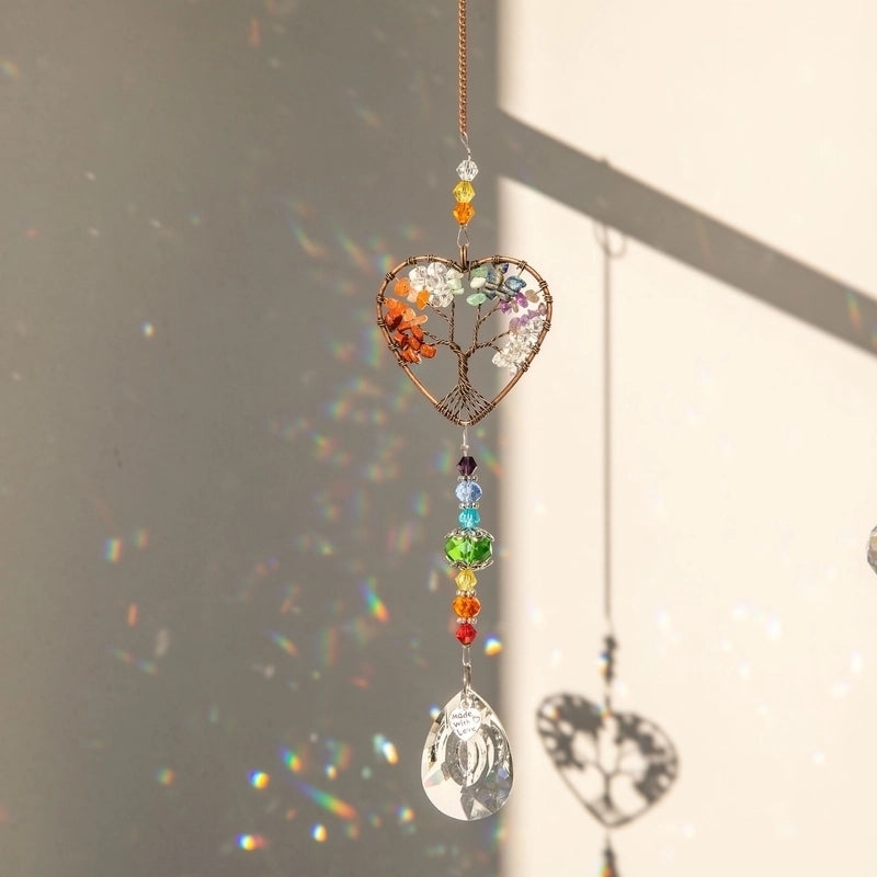 Sweet Water Droplets Heart Shape Life Tree K9 Crystal Crystal Suncatcher Wind Chime Wall Art