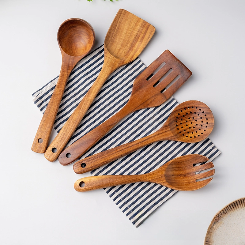 Teak Solid Wood Spatula Non-stick Frying Spatula Cooking Kitchenware 7-piece Wooden Spatula Soup Spoon Colander Full Set Tableware