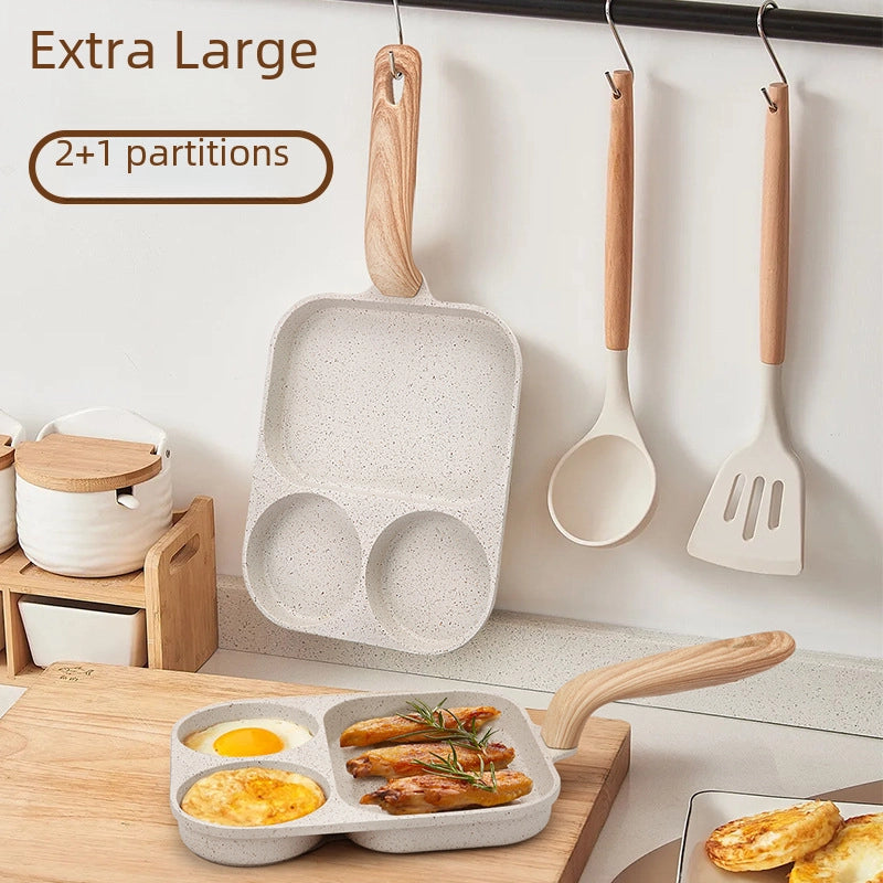 Three-in-One Fried Egg Artifact Non-stick Breakfast Fried Egg Pan Flat Bottom Egg Hamburger Pan Household Steak Frying Pan