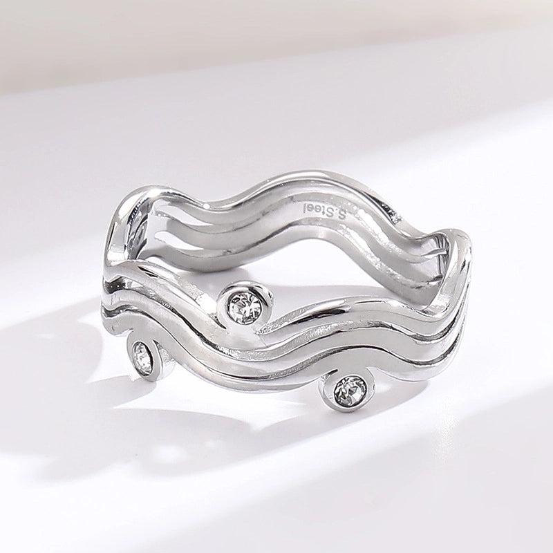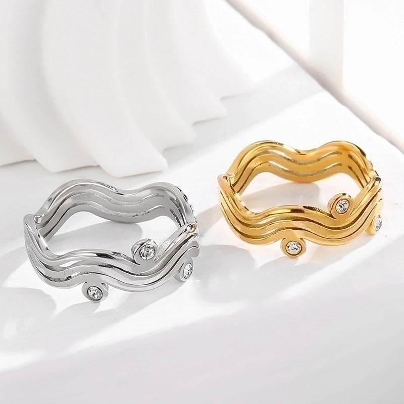 Titanium Steel Minimalist Classic Style Solid Color Inlay Zircon Rings