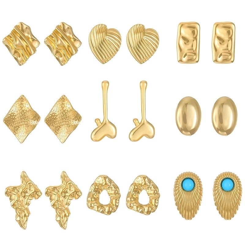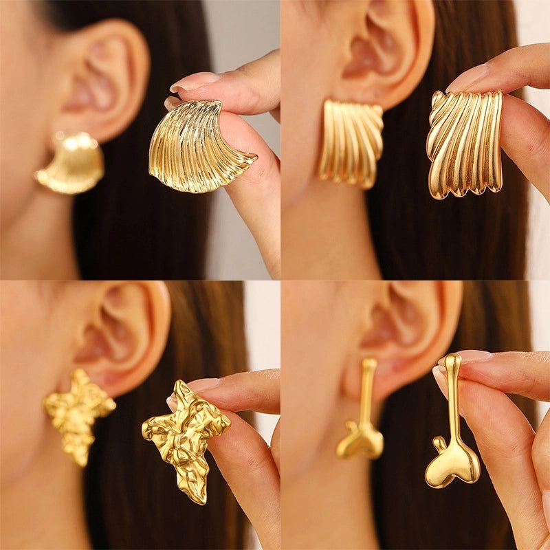 Titanium Steel Pleated Geometric Earrings For Women New Irregular Round Square Lovely Earrings Mid-ancient Earrings Fashion