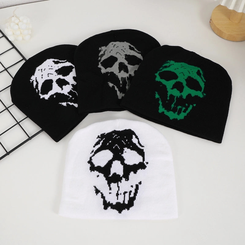 Unisex Casual Funny Minimalist Skull Jacquard Eaveless Wool Cap