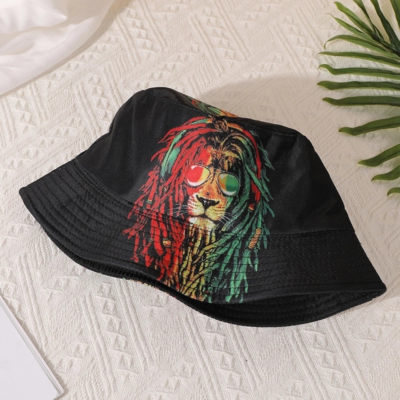 Unisex Casual Sports Commute National Flag Lion Printing Curved Eaves Bucket Hat