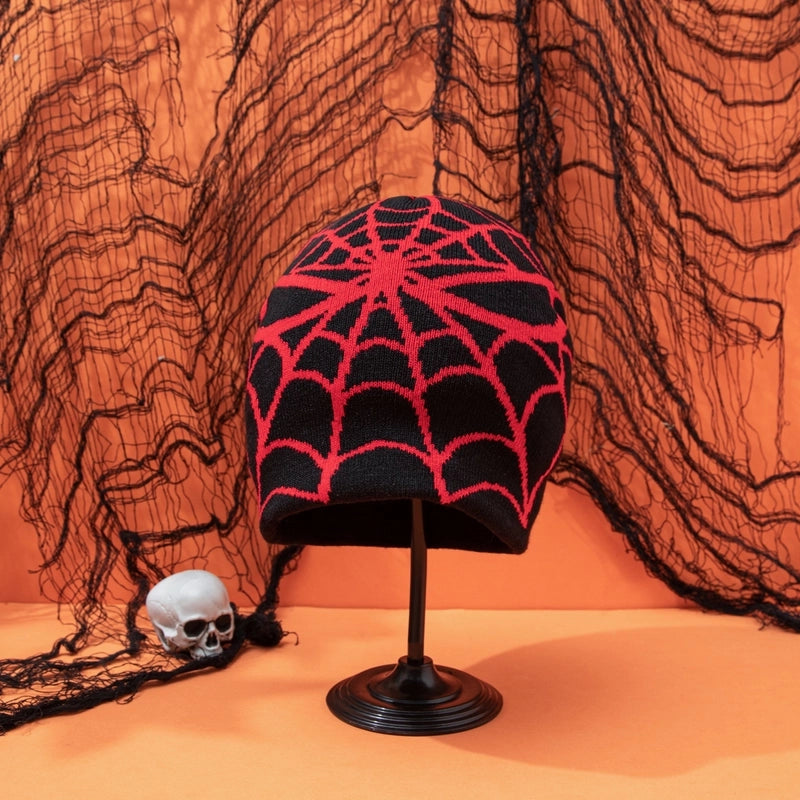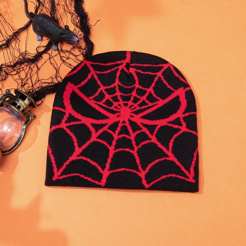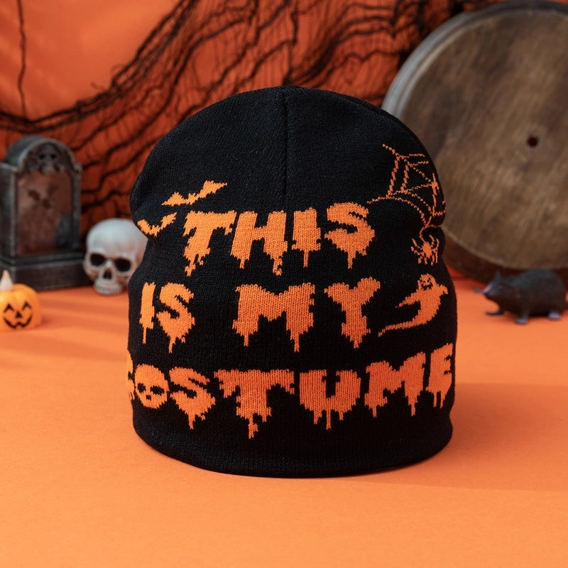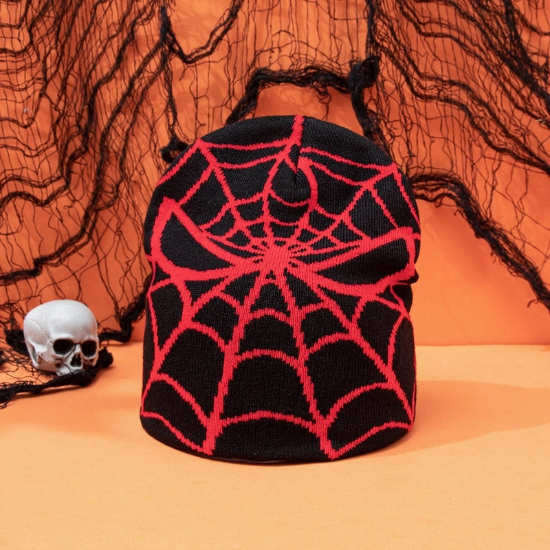 Unisex Funny Letter Spider Web Printing And Dyeing Eaveless Wool Cap