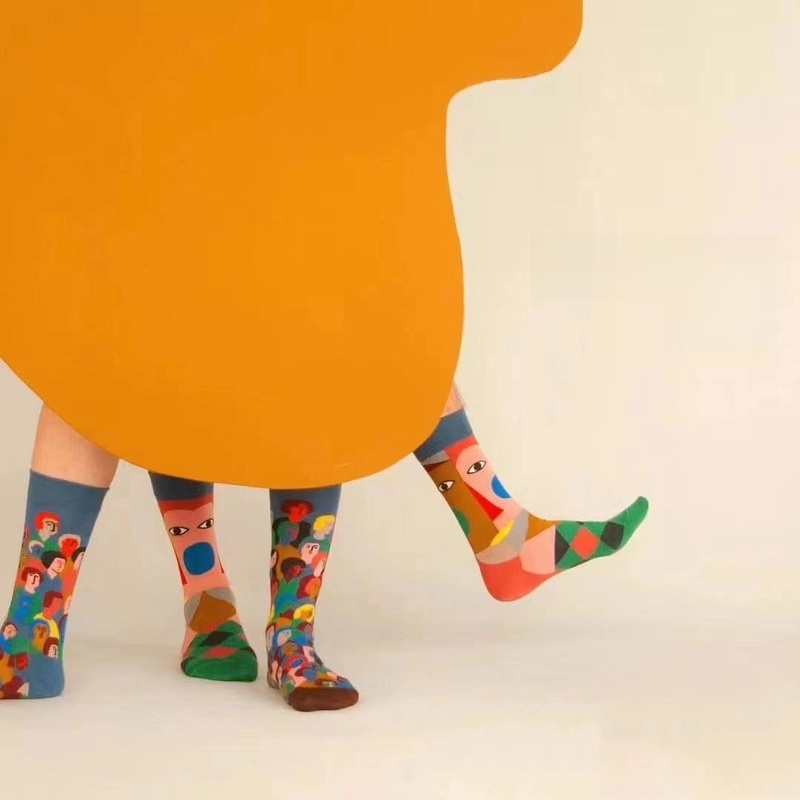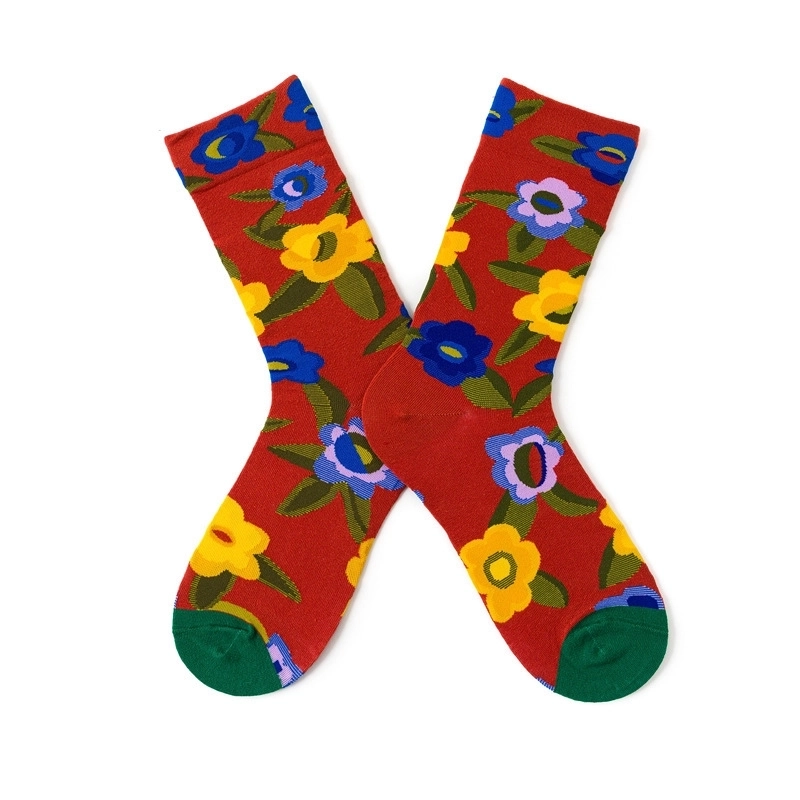 Unisex Funny Minimalist Color Block Flower Cotton Crew Socks A Pair
