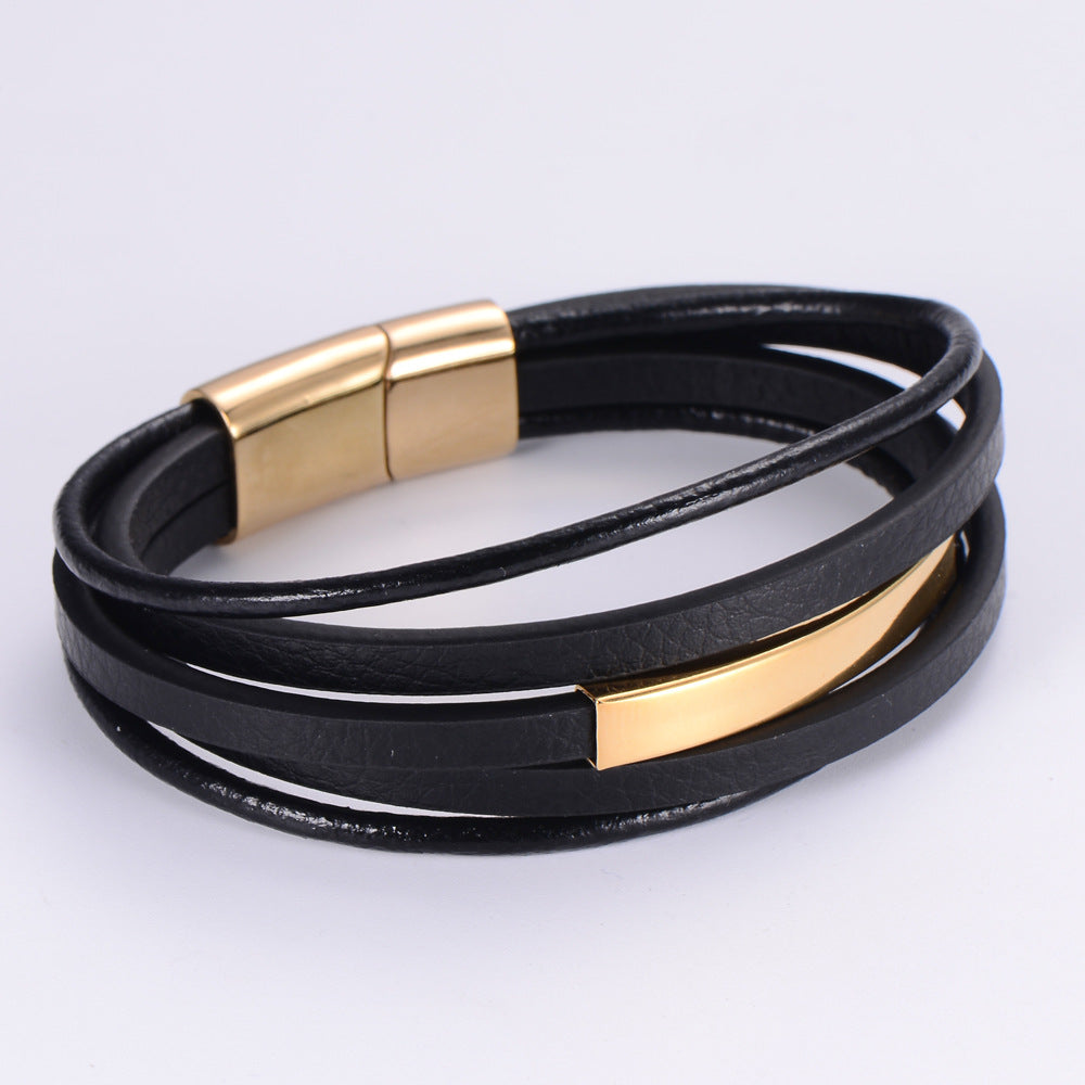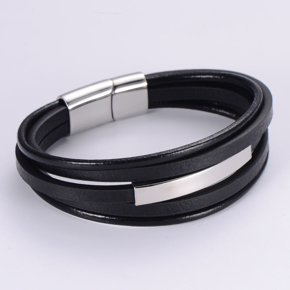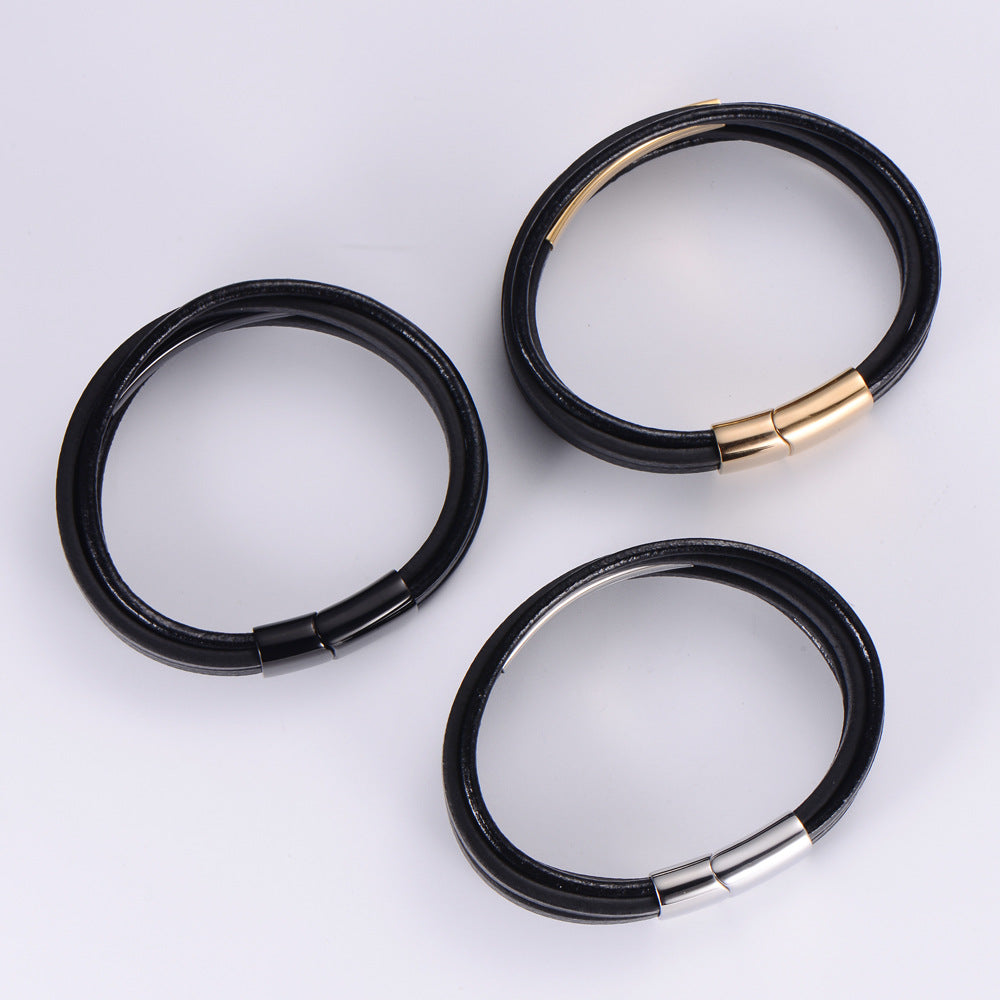 Unisex Minimalist Metal Leather Bangles