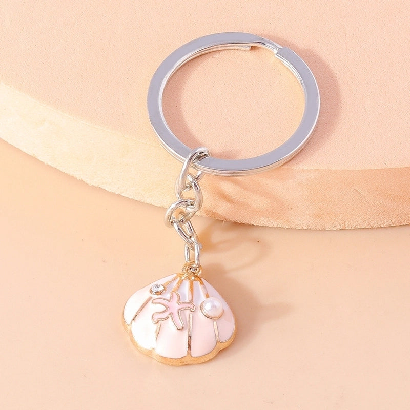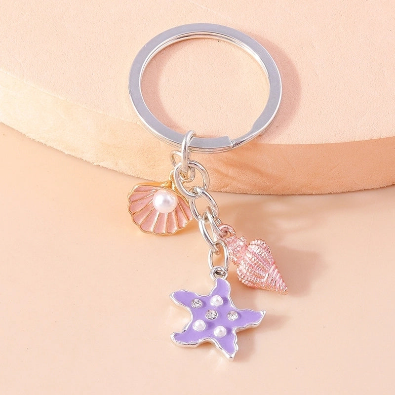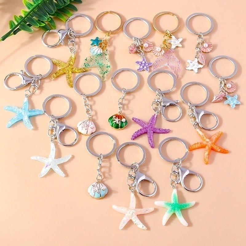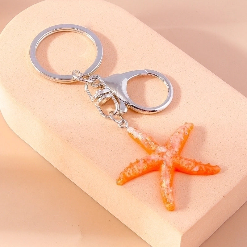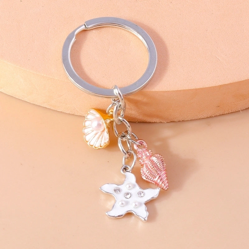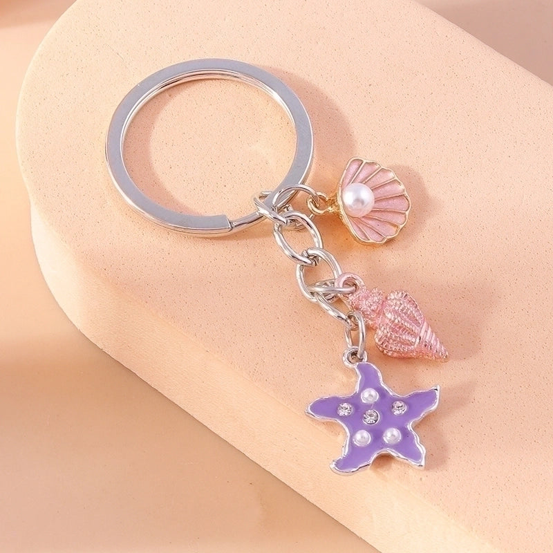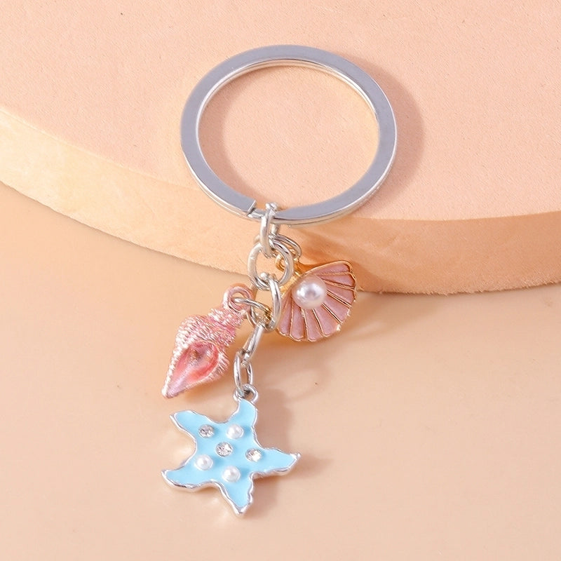 Vacation Beach Starfish Shell Alloy Plastic Bag Pendant Keychain