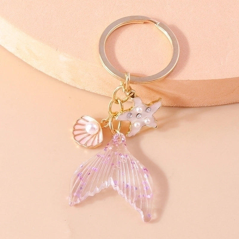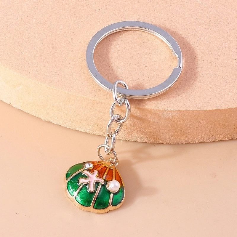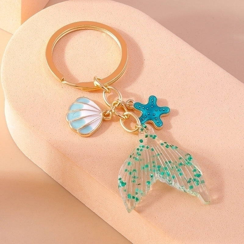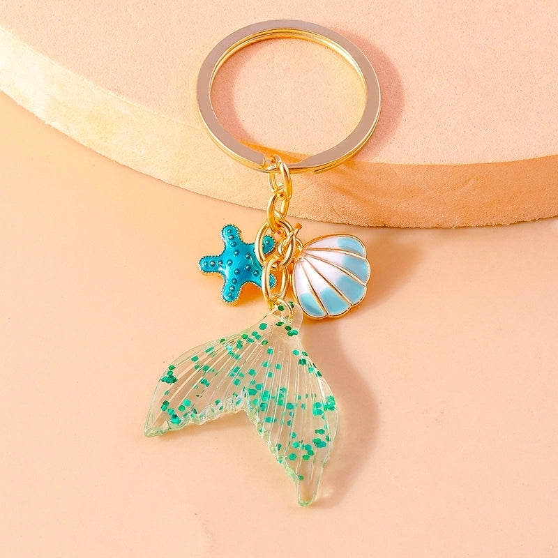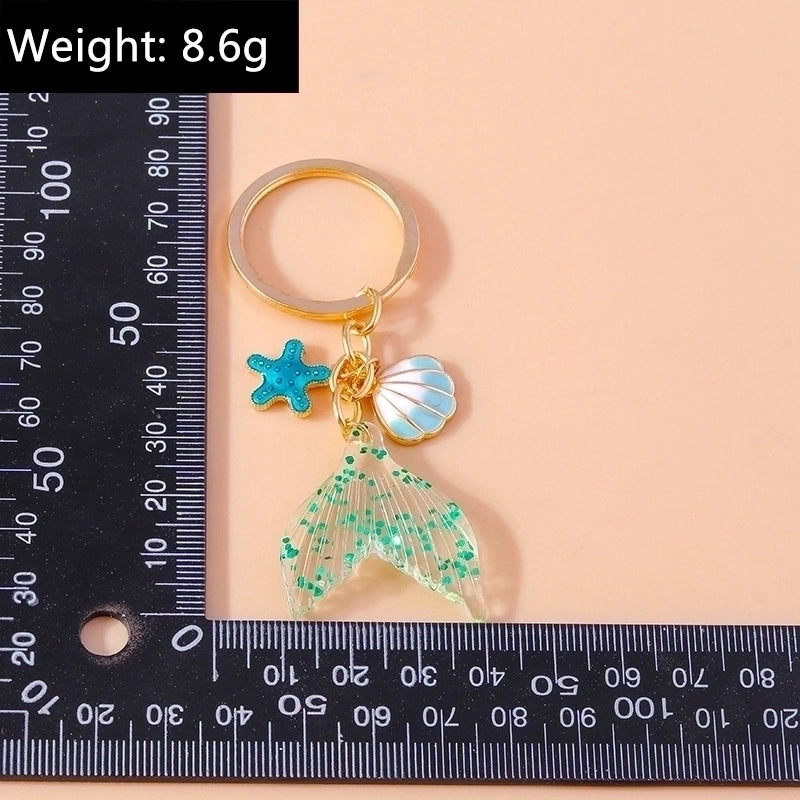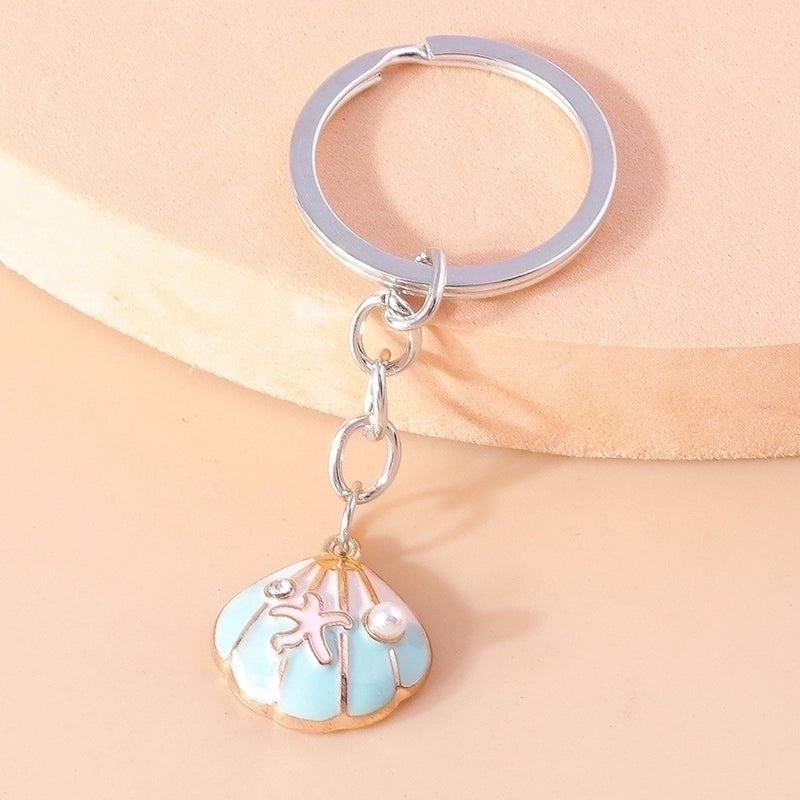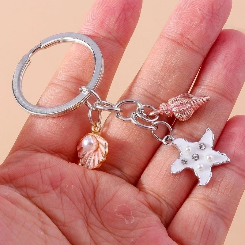 Vacation Beach Starfish Shell Alloy Plastic Bag Pendant Keychain