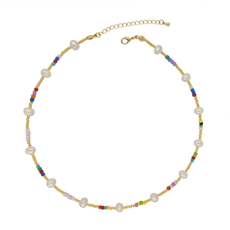 Vacation Multicolor Freshwater Pearl Seed Bead Beaded Knitting Women’s Necklace