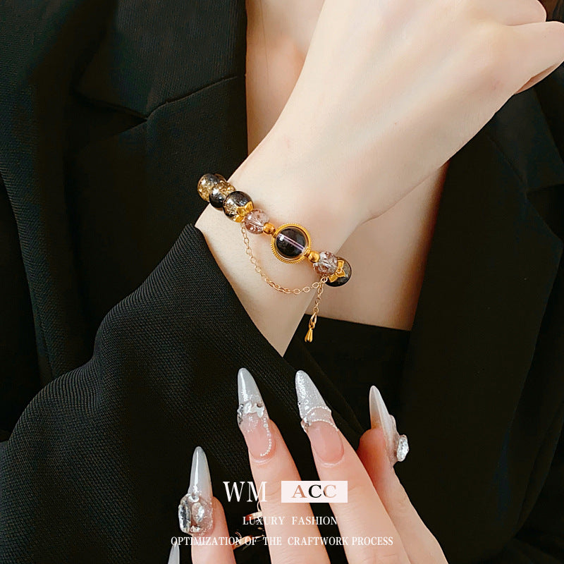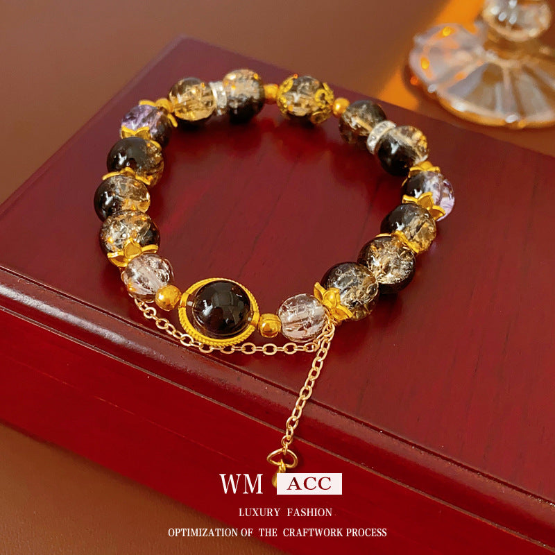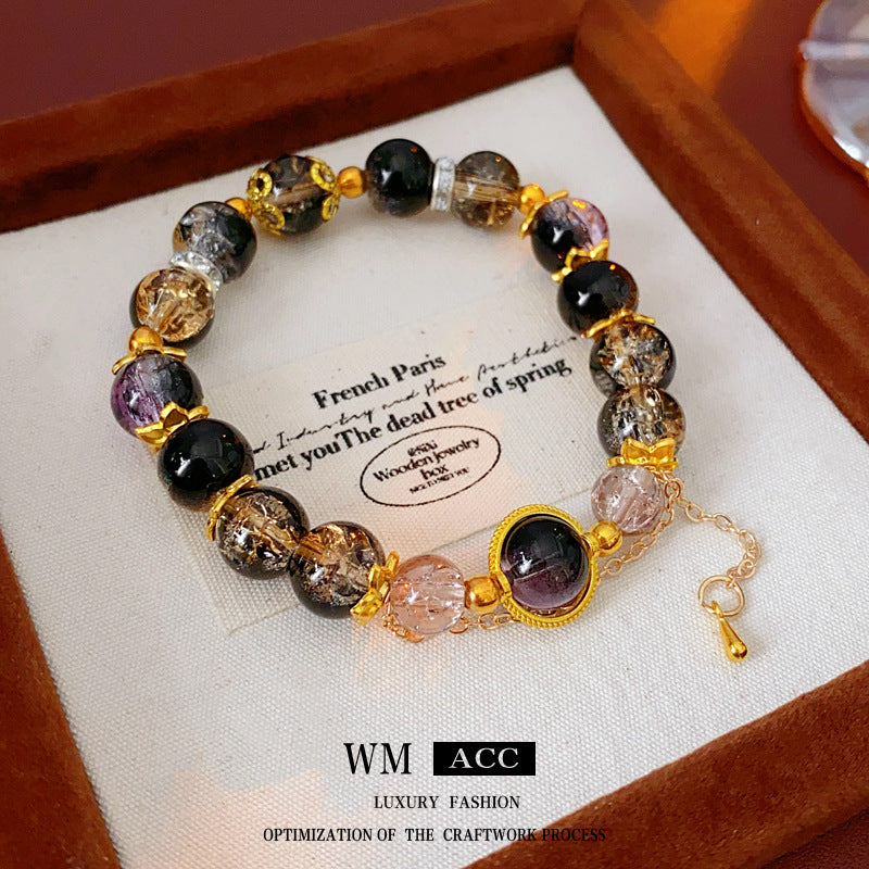 Vintage Retro Women Round Geometric Glass Electroplating Bracelets