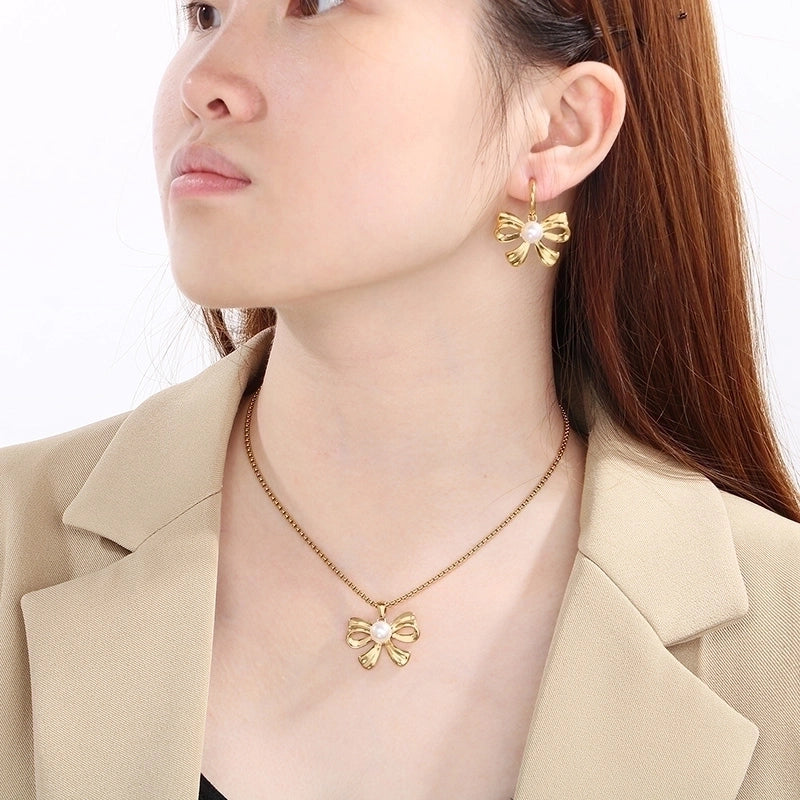 Be the first to review “Vintage Style Bow Knot 304 Stainless Steel Shell 18K Gold Plated Earrings Necklace” Cancel reply