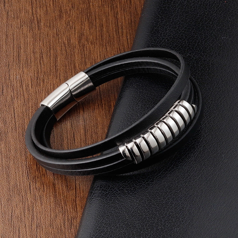 Be the first to review “Vintage Style Classic Style Geometric Pu Leather Titanium Steel Woven Chain Wrap Bracelets” Cancel reply