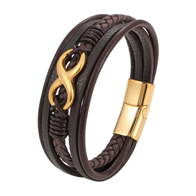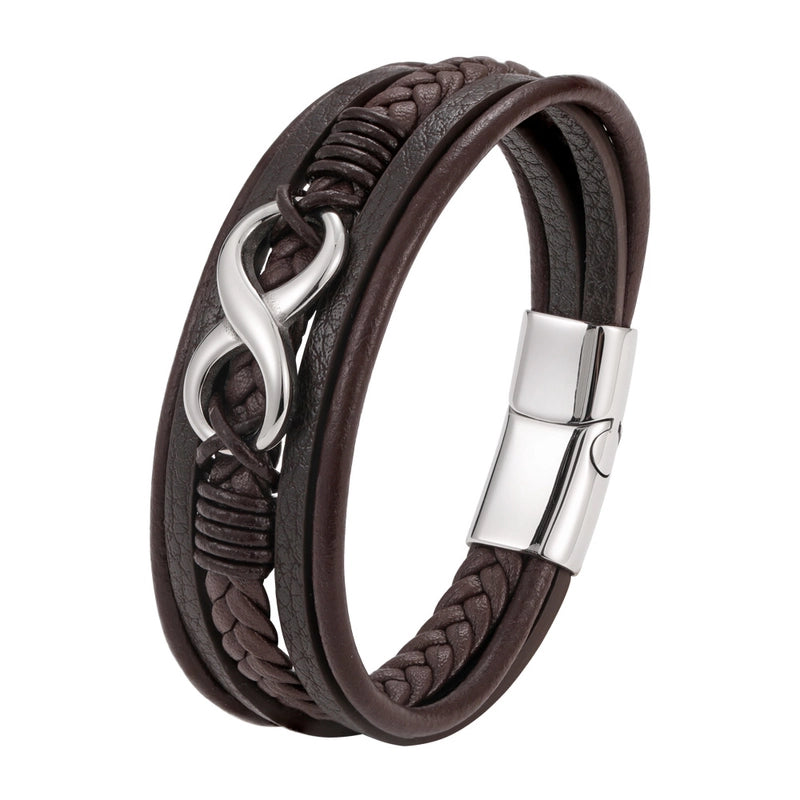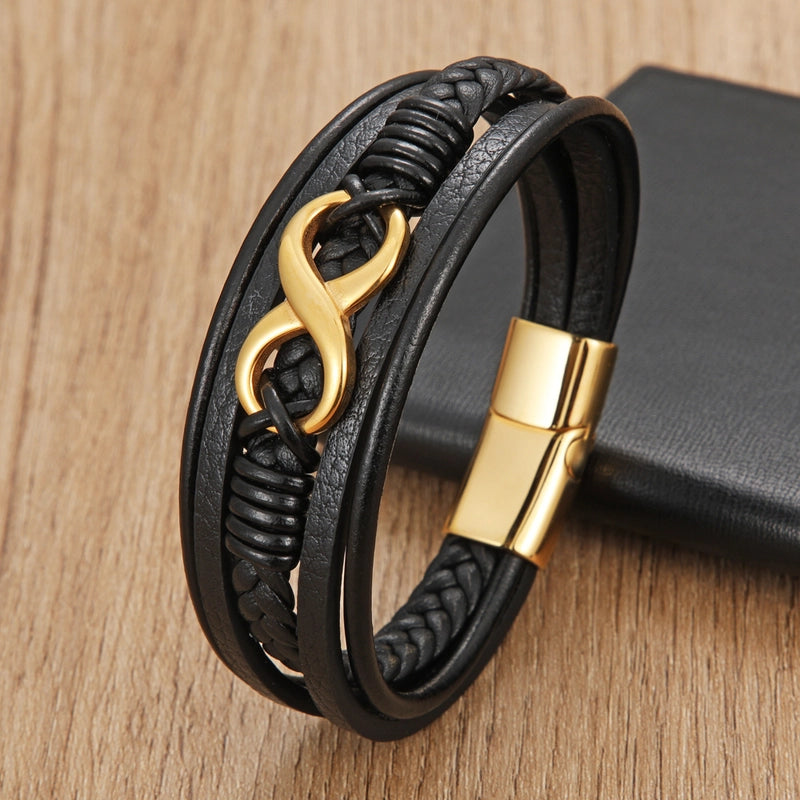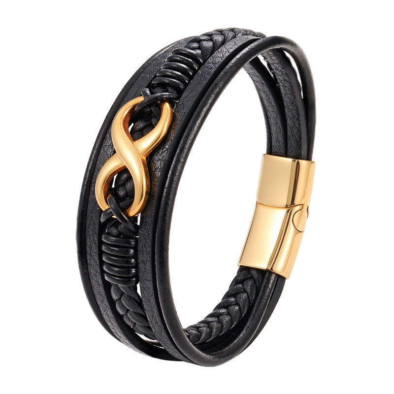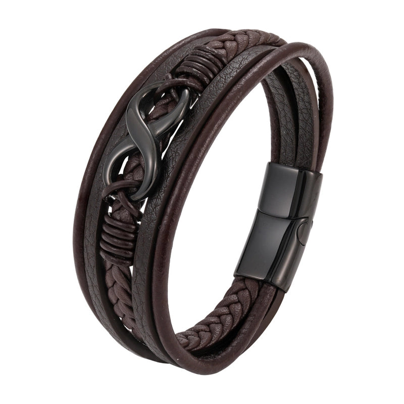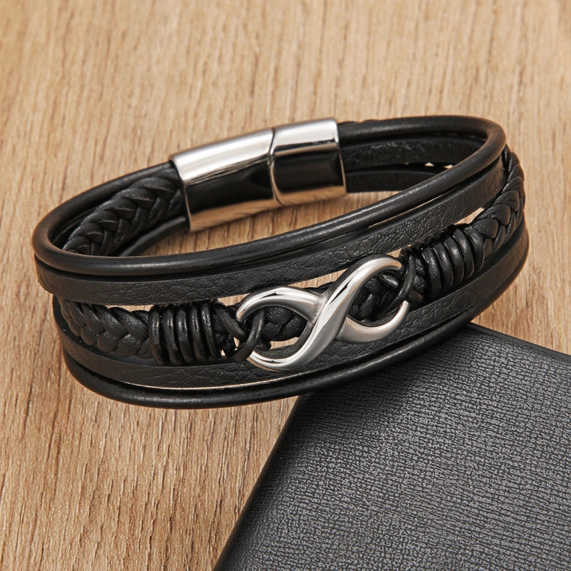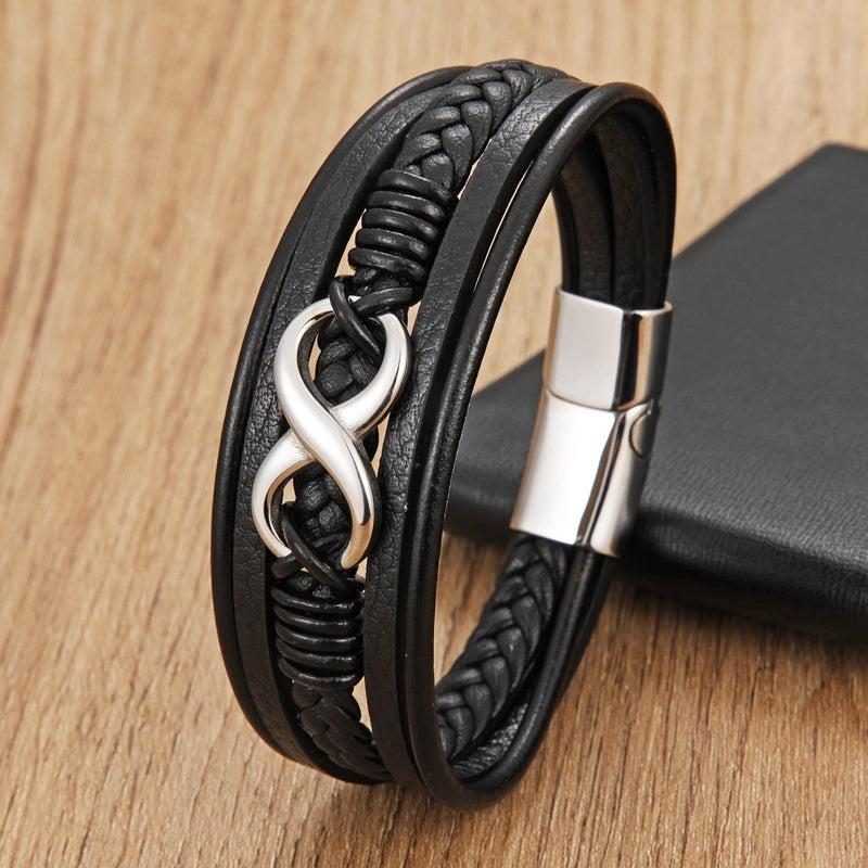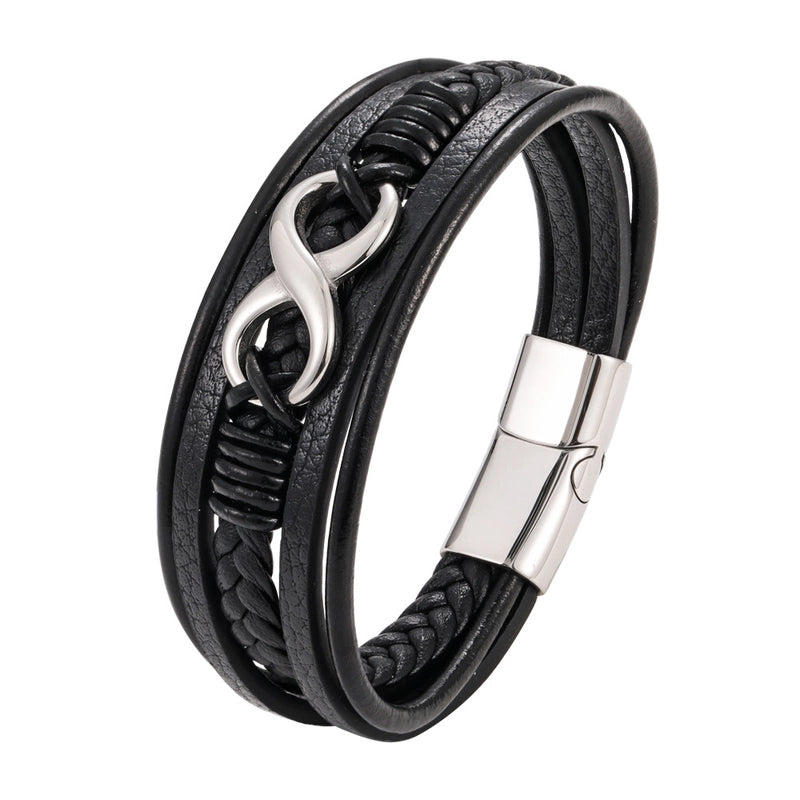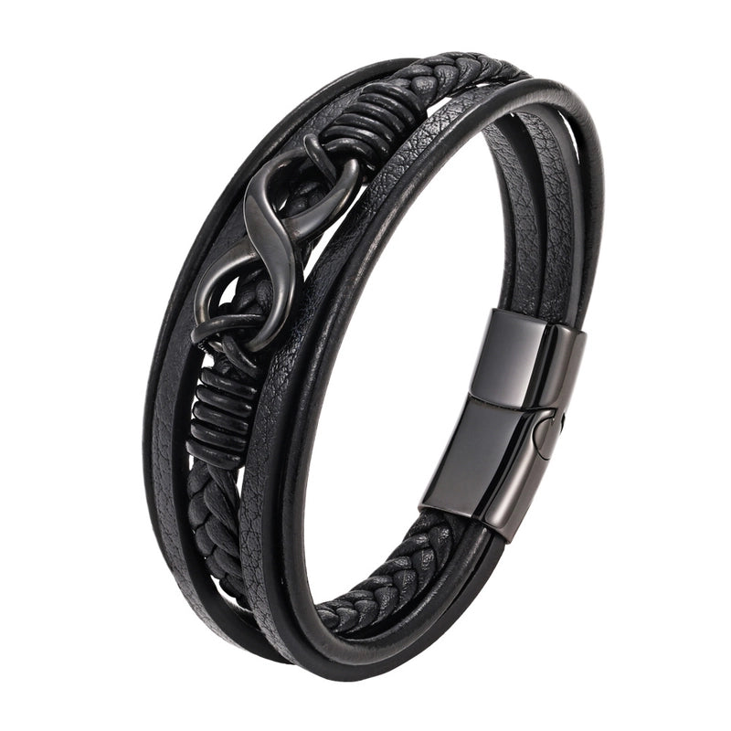 Vintage Style Classic Style Infinity Pu Leather Titanium Steel Woven Chain Wrap Bracelets