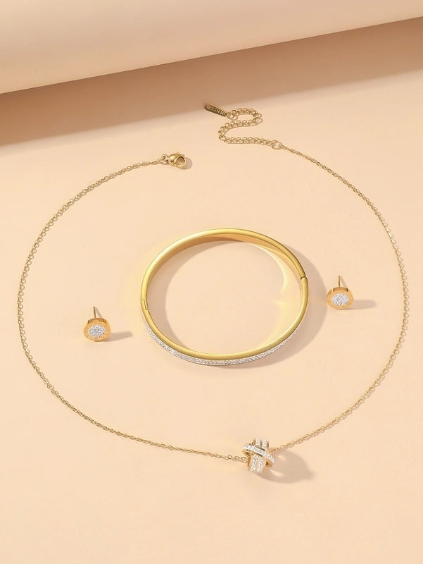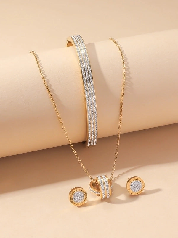 Vintage Style Minimalist Geometric 304 Stainless Steel Rhinestones 18K Gold Plated Inlay Bracelets Earrings Necklace