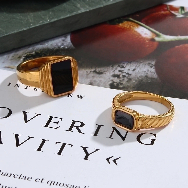 Vintage Style Square 304 Stainless Steel Zircon 18K Gold Plated Inlay Rings