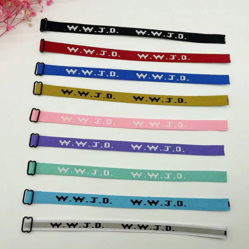 W.W.J.D. Letter Jacquard Printed Wrist Band Bracelet Ribbon Unisex WWJD Bracelet Adjustable Bracelet