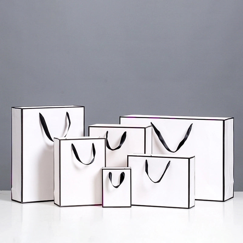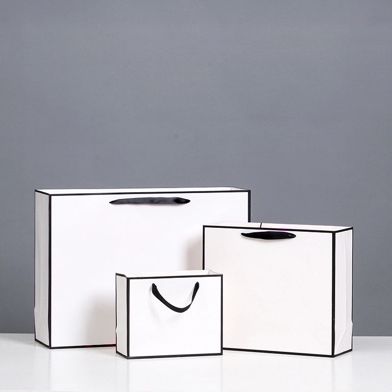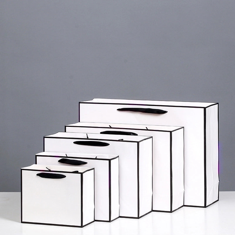 White Cardboard Black Border Gift Bag Clothing Shopping Tote Bag Kraft Paper Takeaway Packaging Bag