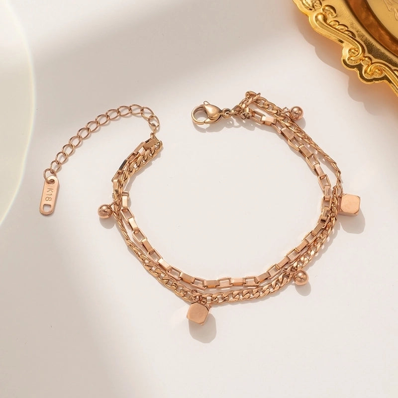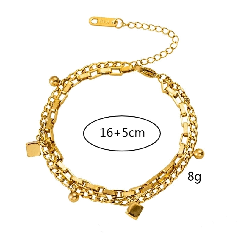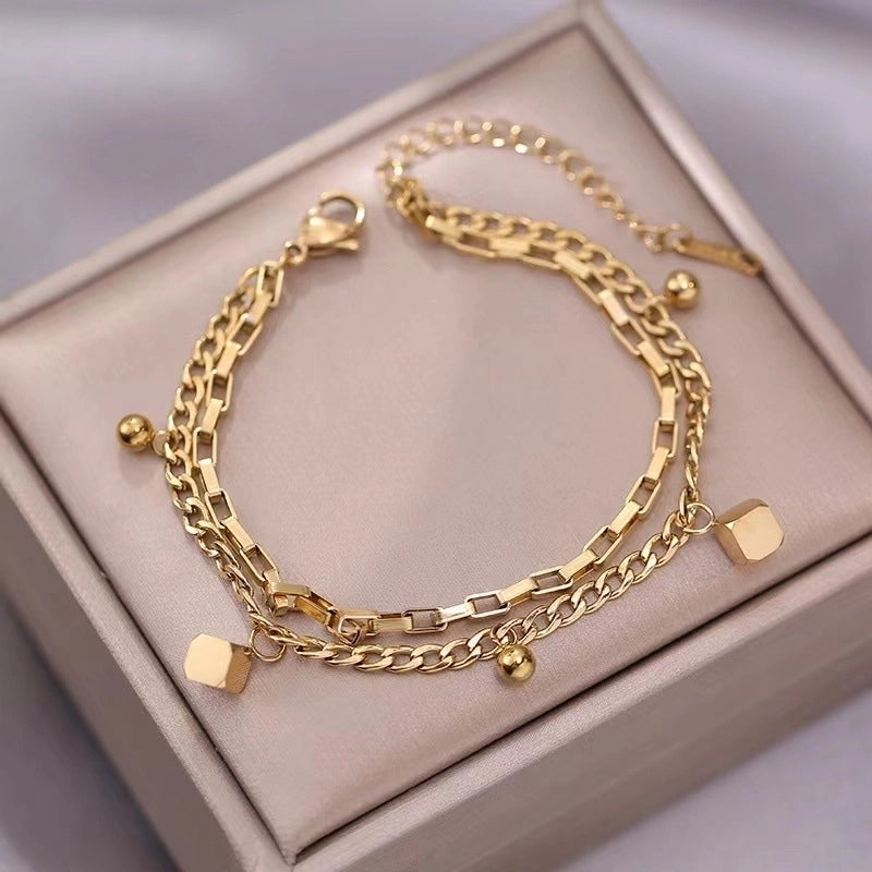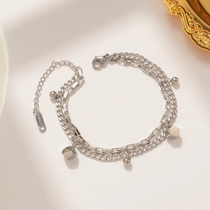 [Whole Titanium Steel] Personalized Fashion Titanium Steel Bracelet Women’s Double-Layer Geometric Square Bracelet