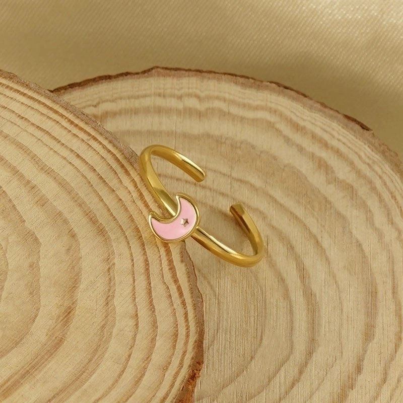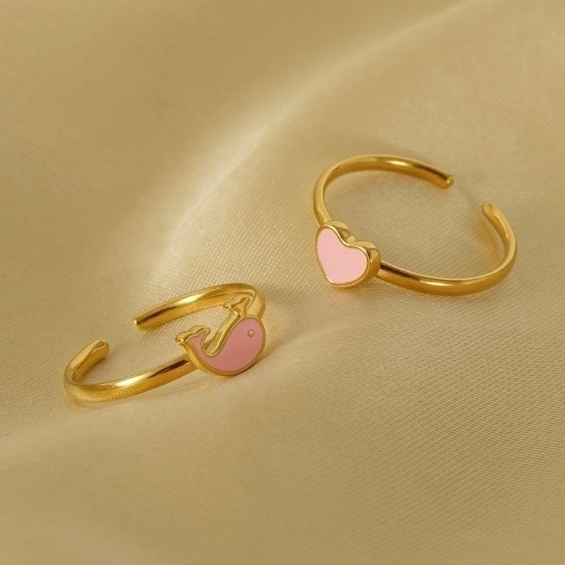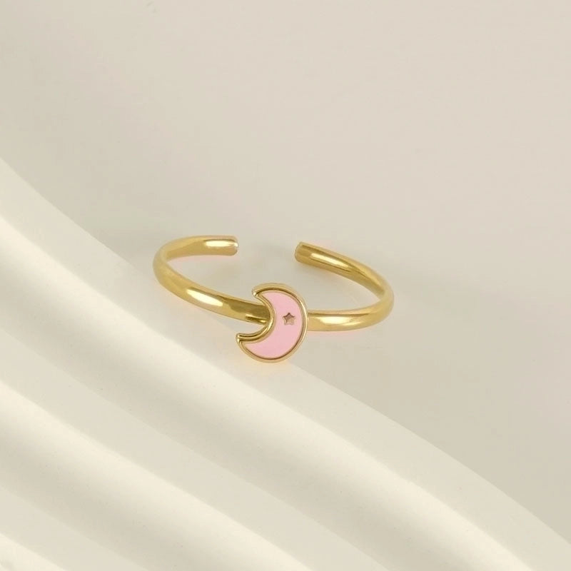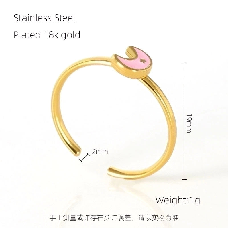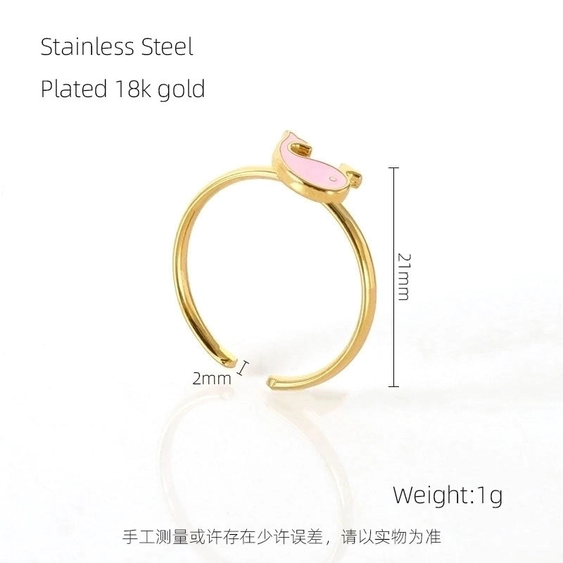 Stainless Steel 18K Gold Plated Cute Plating Moon Dolphin Heart Shape Titanium Steel Open Ring