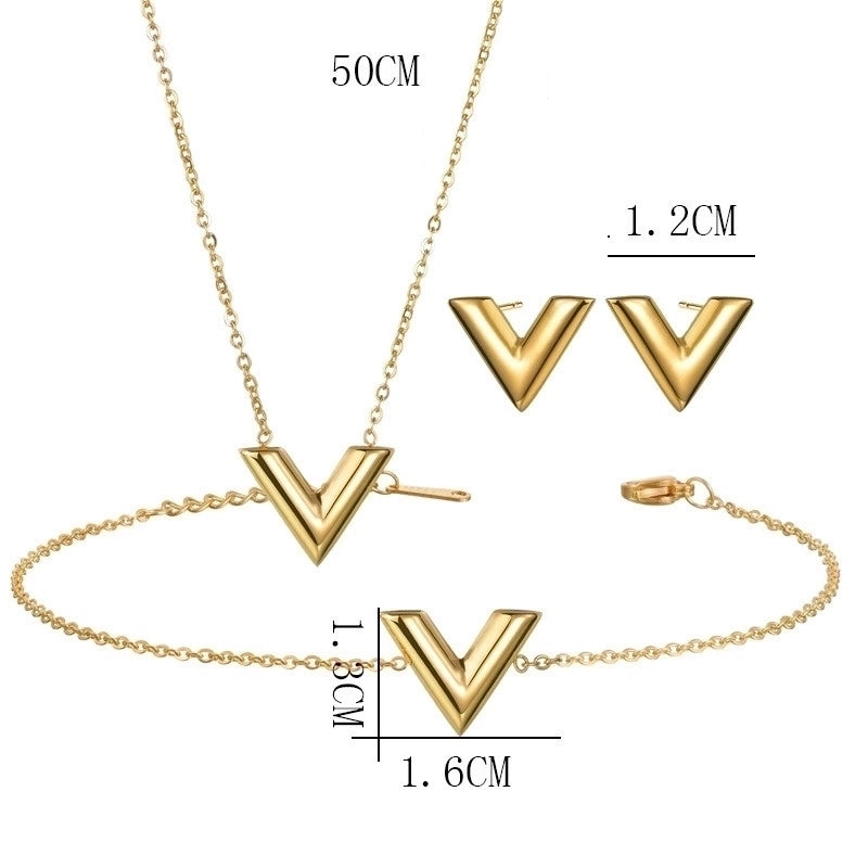 Be the first to review “Fashion V Shape Stainless Steel Plating Bracelets Earrings Necklace” Cancel reply