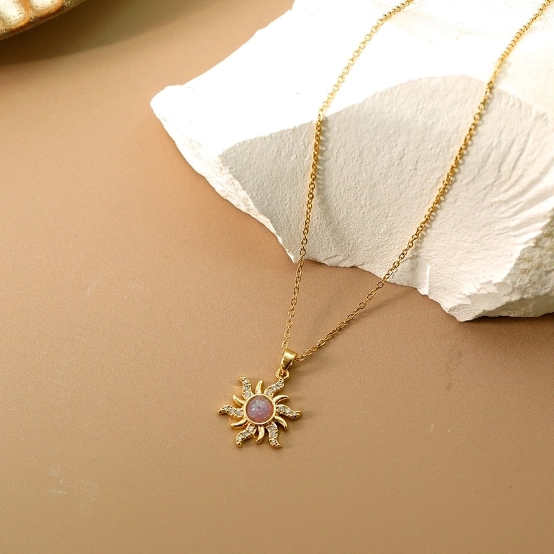 Minimalist Classic Style Commute Sun Titanium Steel Resin Zircon 18K Gold Plated Inlay Pendant Necklace