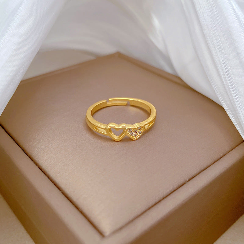 304 Stainless Steel 18K Gold Plated Elegant Retro Plating Geometric Leaf Heart Shape Open Rings