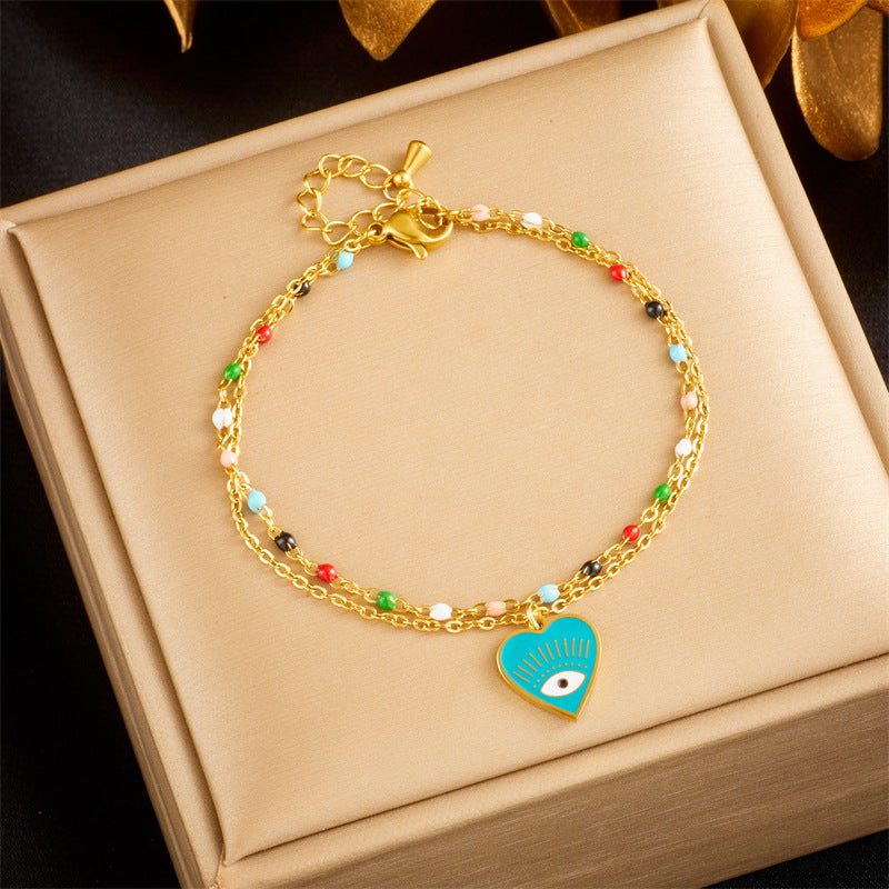 Women Heart Chain Titanium Steel Electroplating Bracelets