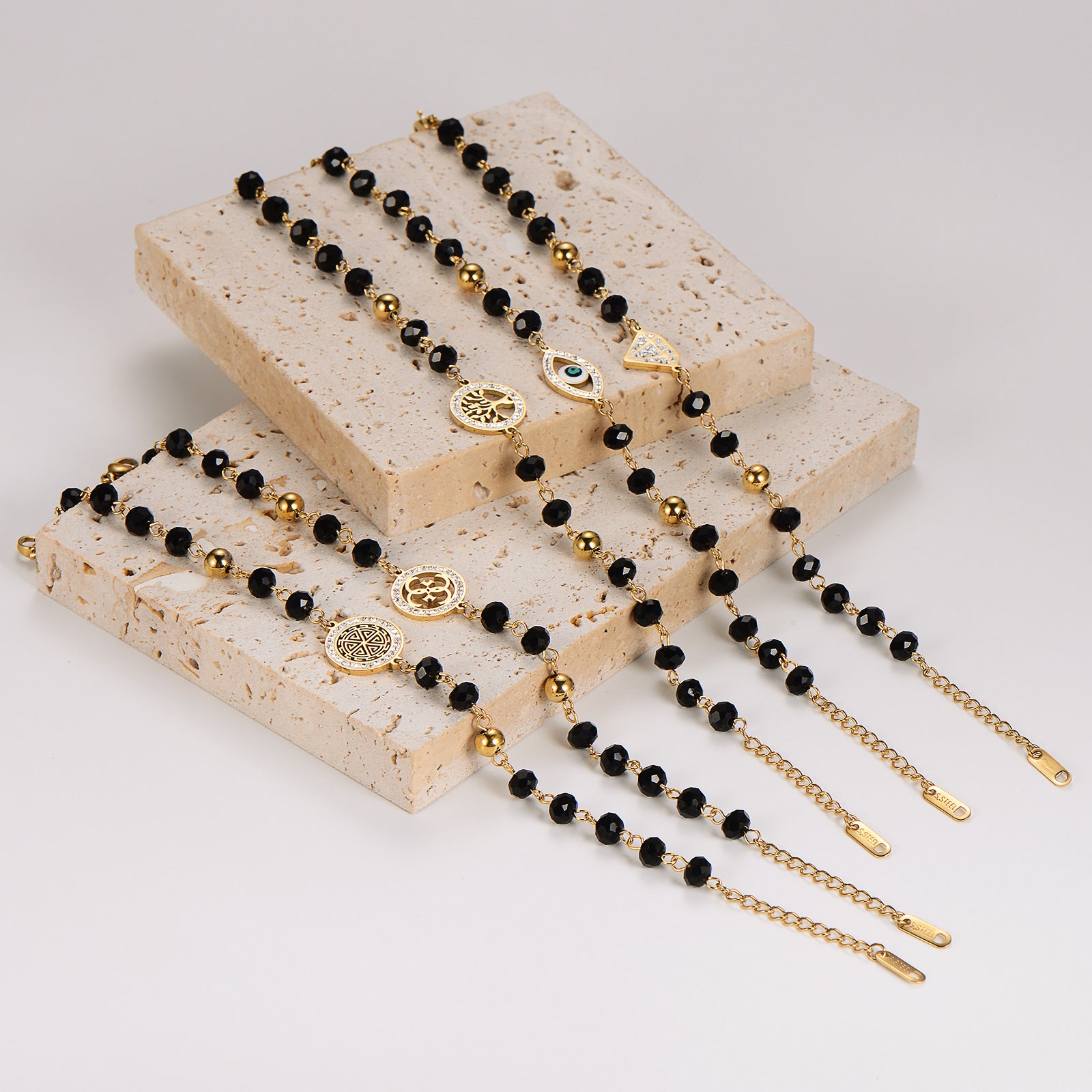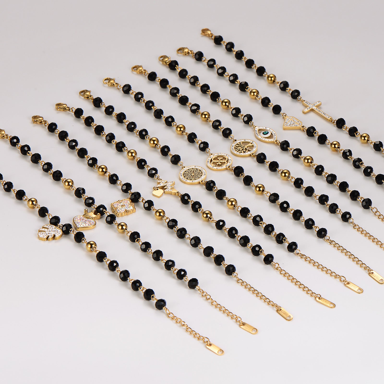 Women Minimalist Cross Crown Heart Geometric Crown Heart Stainless Steel Electroplating Bracelets