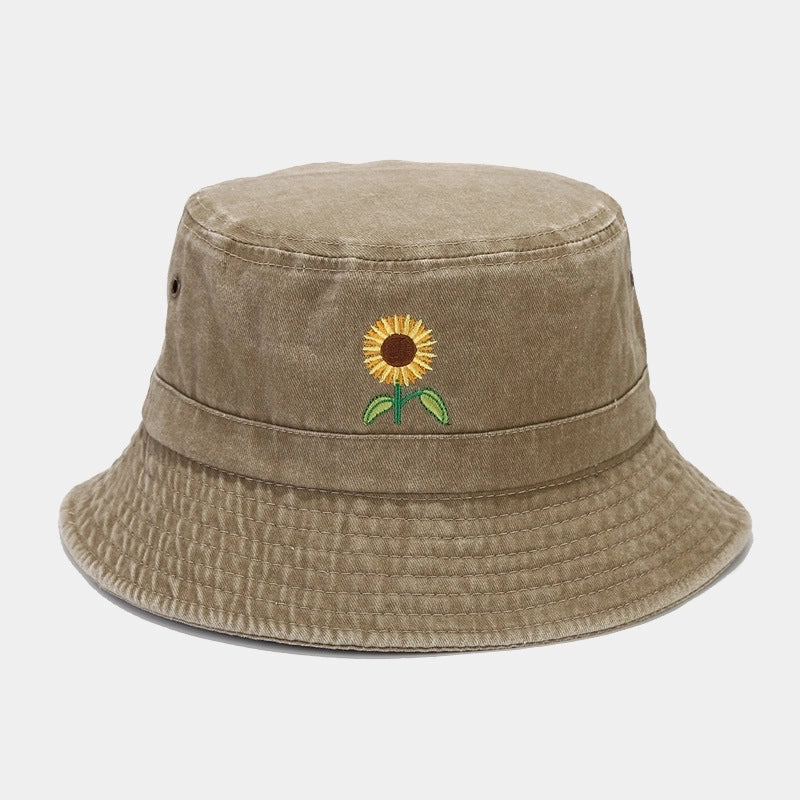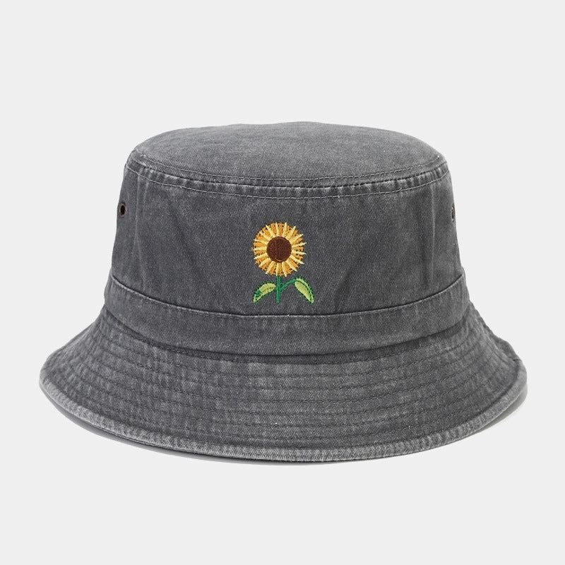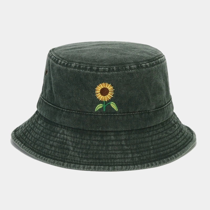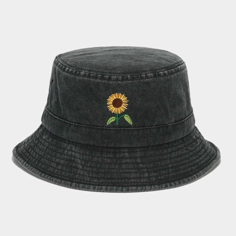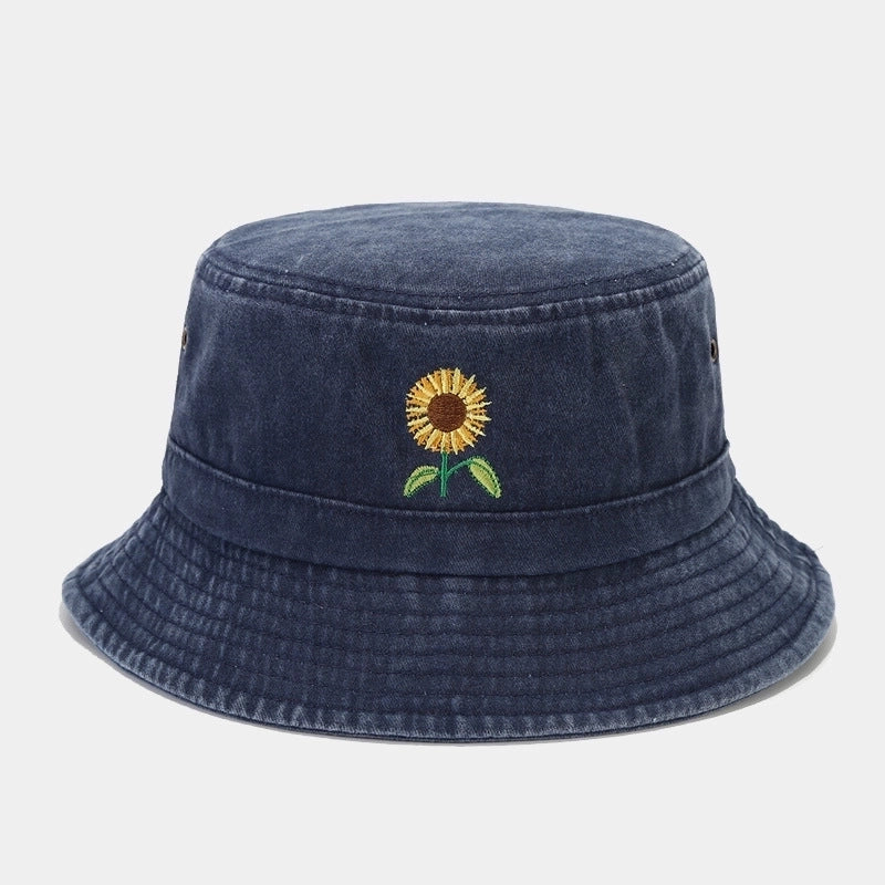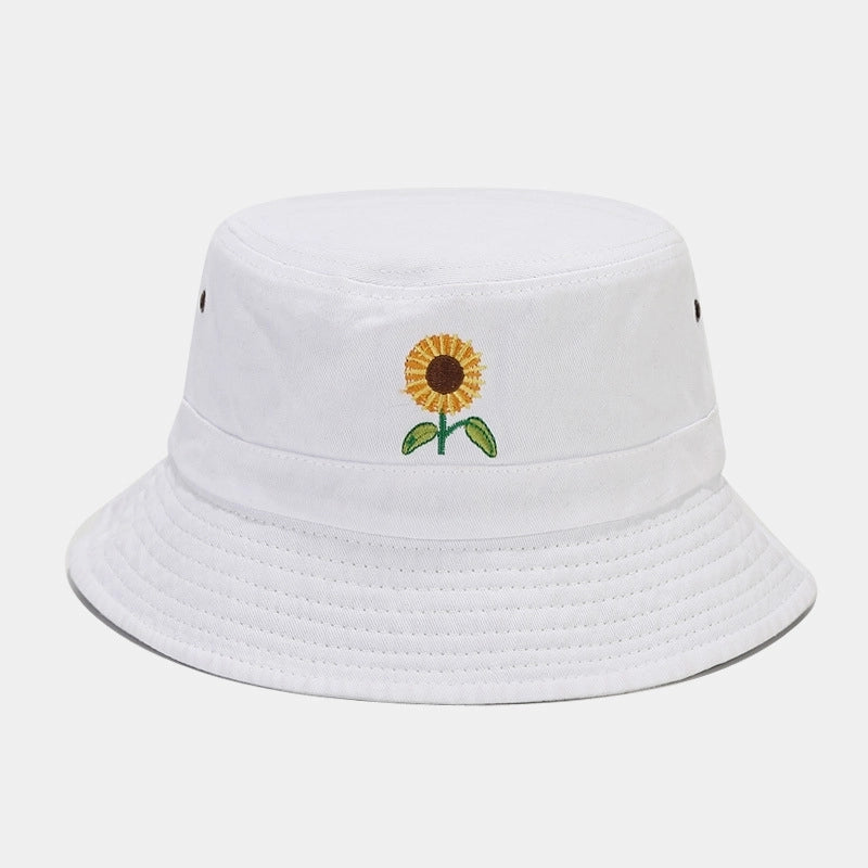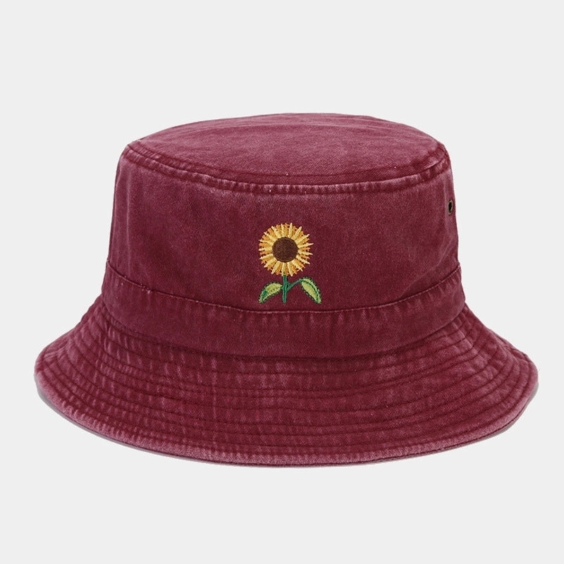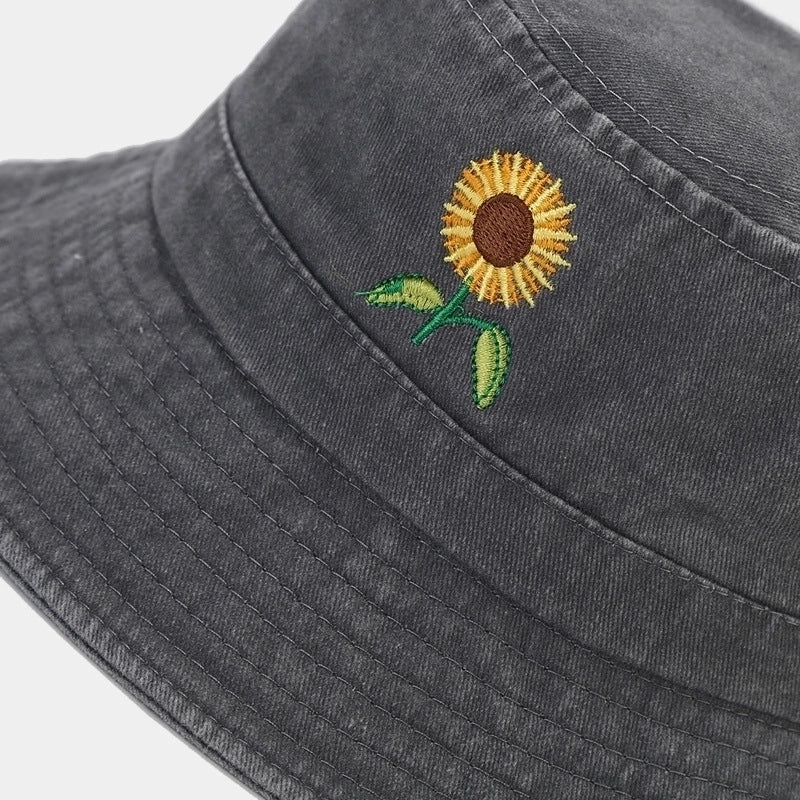 Women’s Basic Sunflower Embroidery Big Eaves Bucket Hat