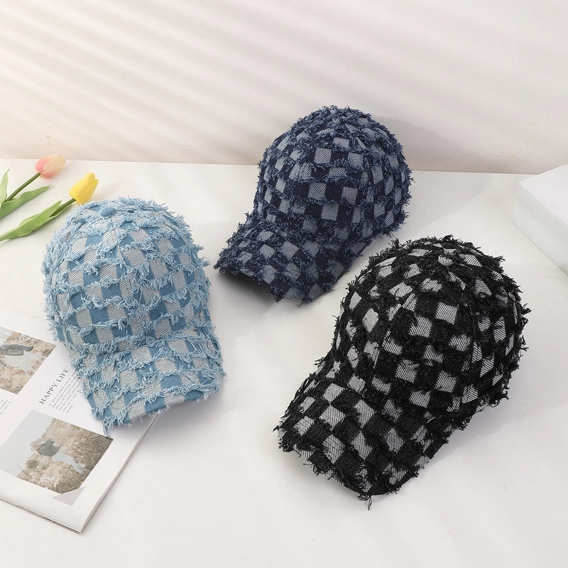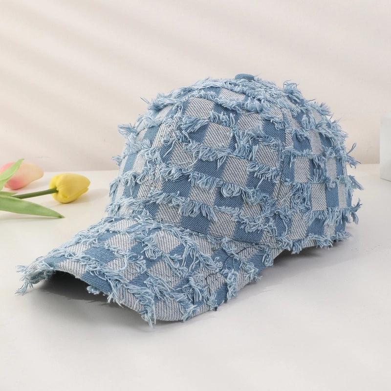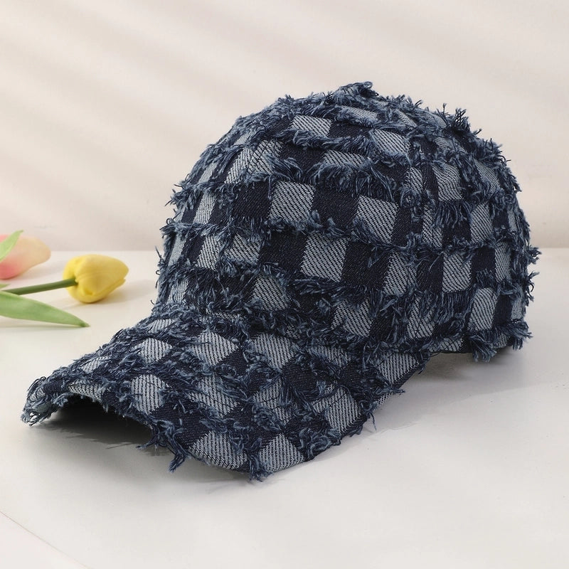 Women’s Casual Vintage Style Commute Checkerboard Raw Hem Curved Eaves Baseball Cap