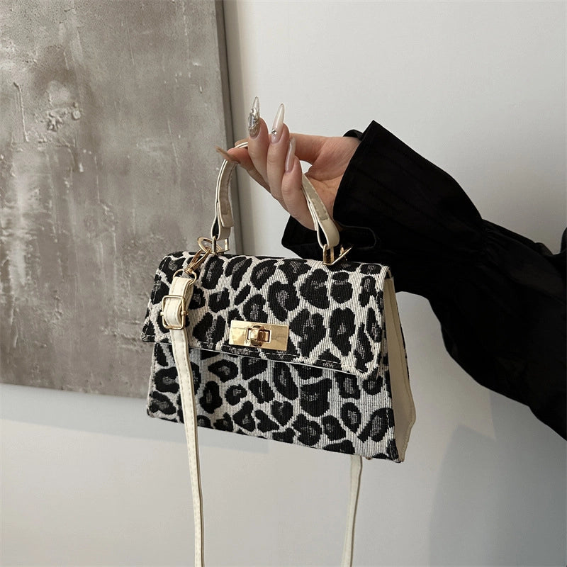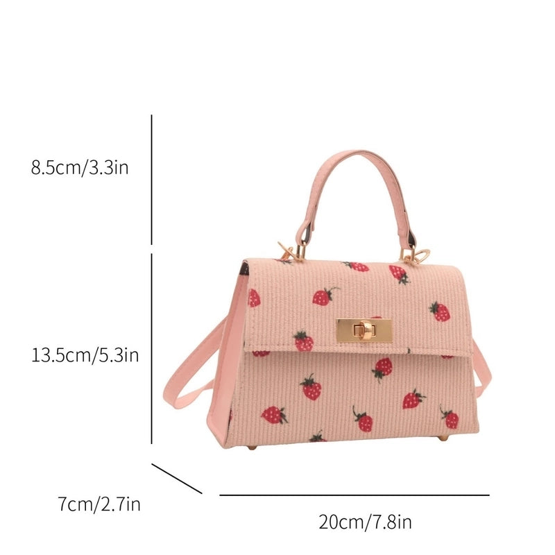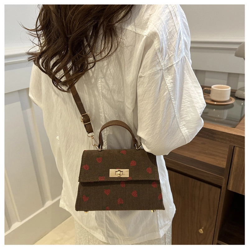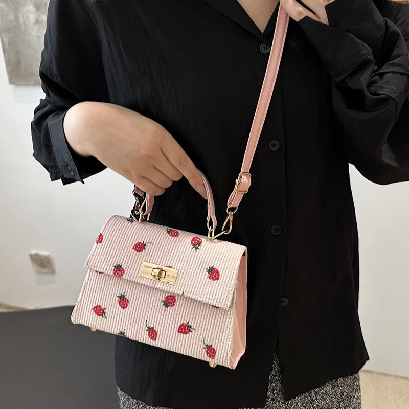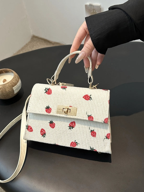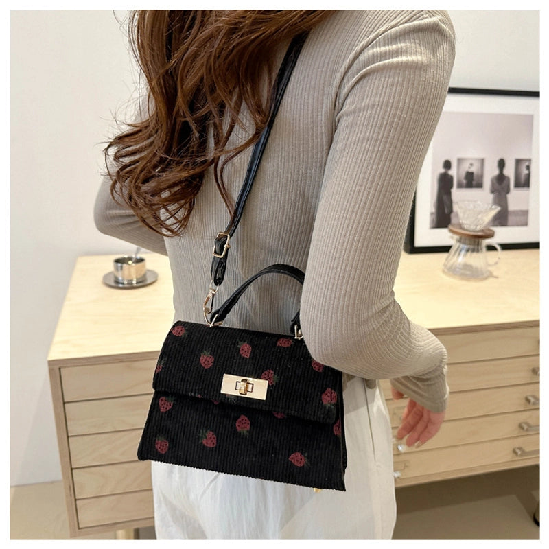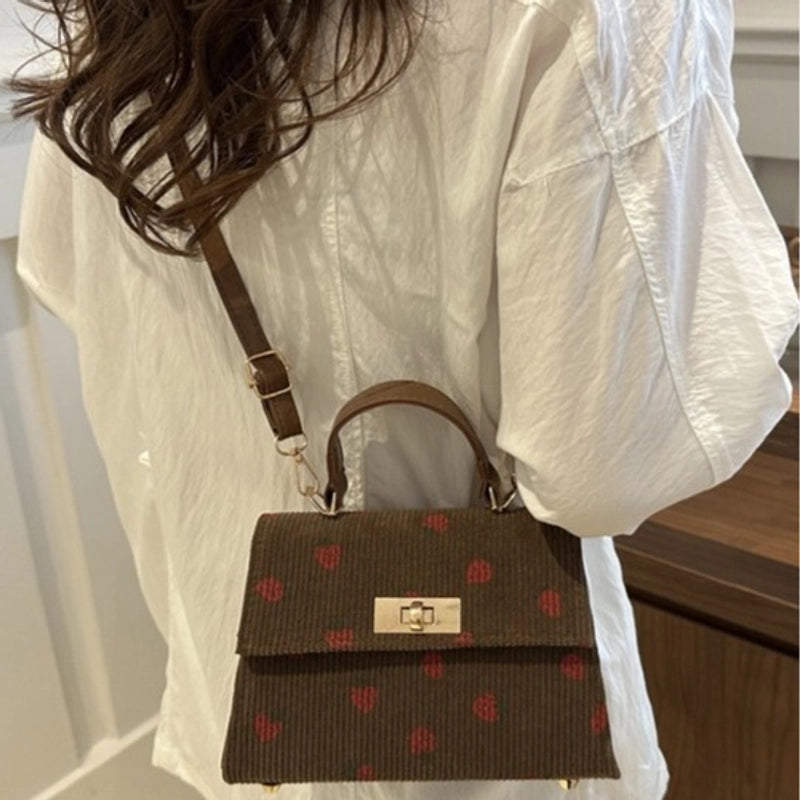 Women’s Corduroy Strawberry Leopard Streetwear Square Flip Cover Handbag Crossbody Bag