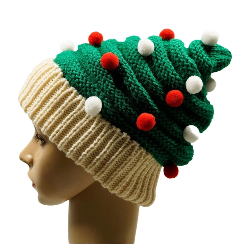 Women’s Cute Color Block Elk Pom Poms Eaveless Wool Cap