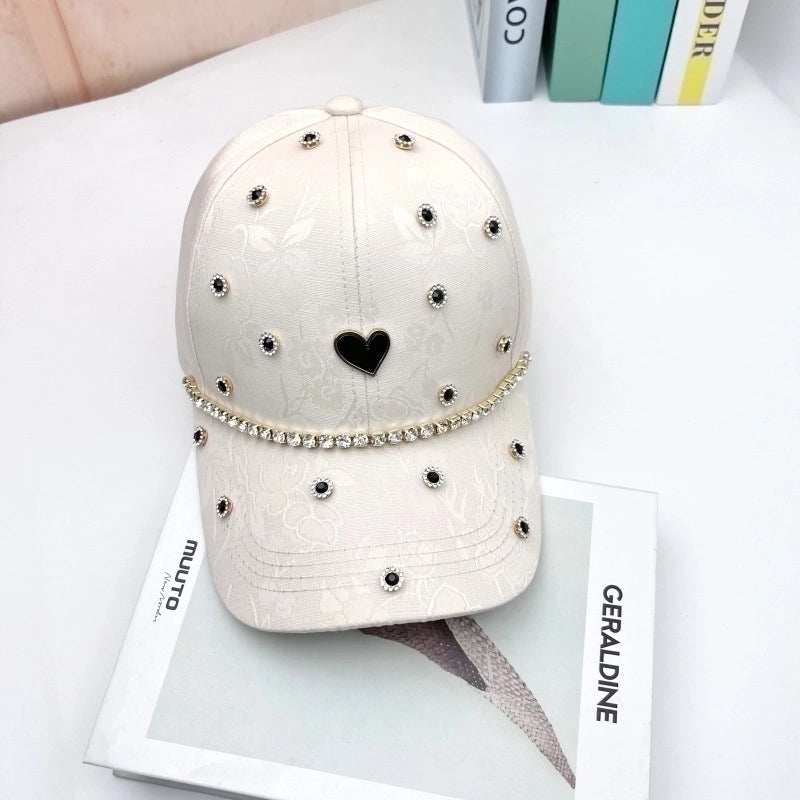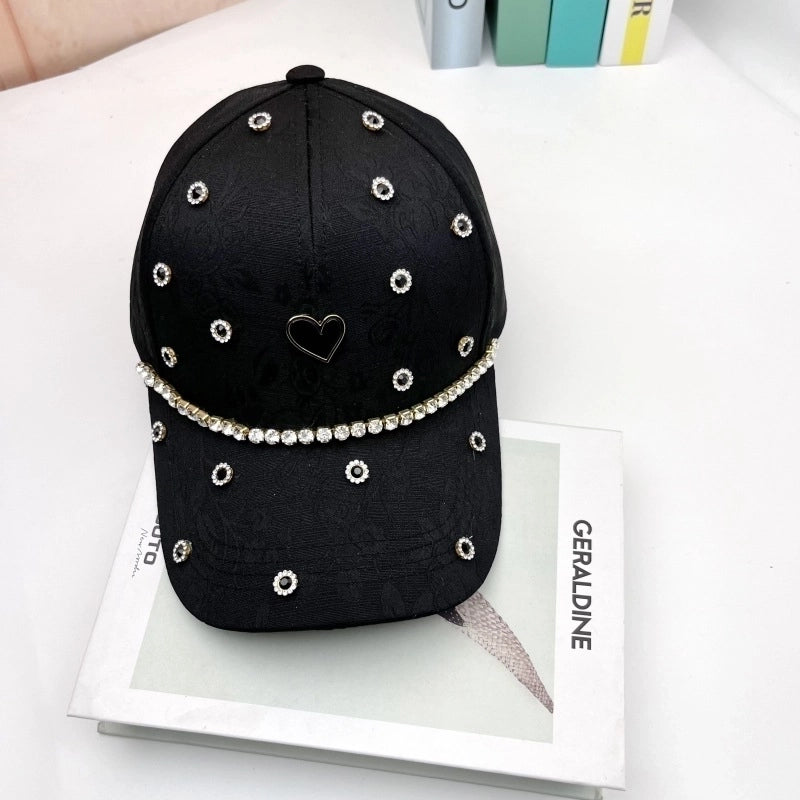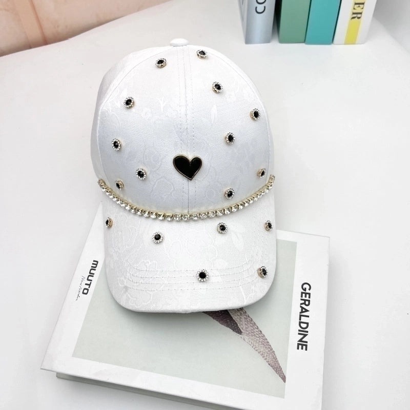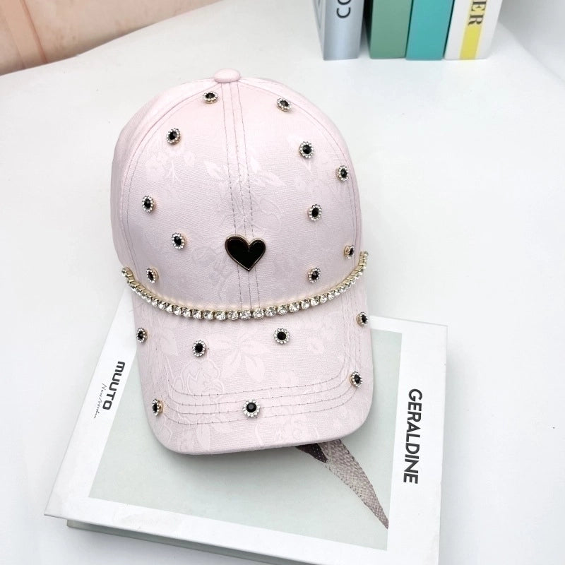Women’s Cute Sweet Solid Color Rhinestone Curved Eaves Baseball Cap