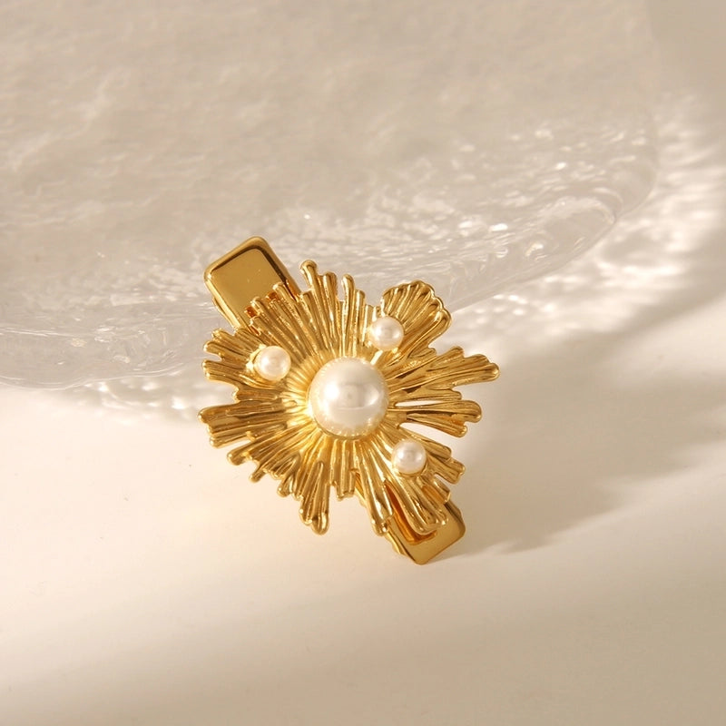 Women’s Fairy Style Flower 304 Stainless Steel Polishing Plating Artificial Pearls Hair Clip