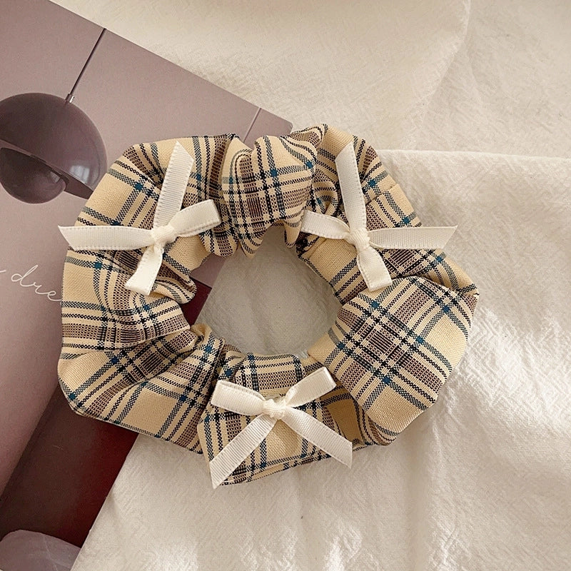 Women’s IG Style Sweet Plaid Bow Knot Cloth Rib-Knit Lace Rivet Hair Tie