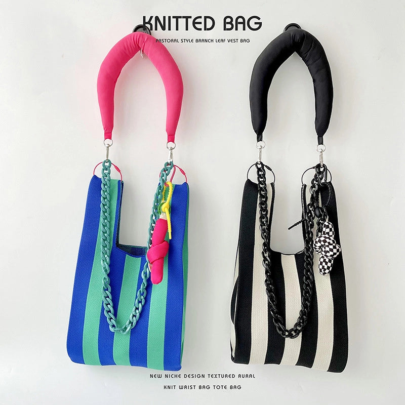 Women’s Medium All Seasons Polyester Stripe Classic Style Square Open Handbag