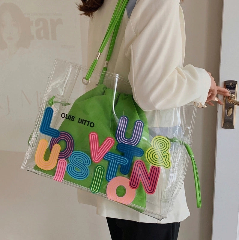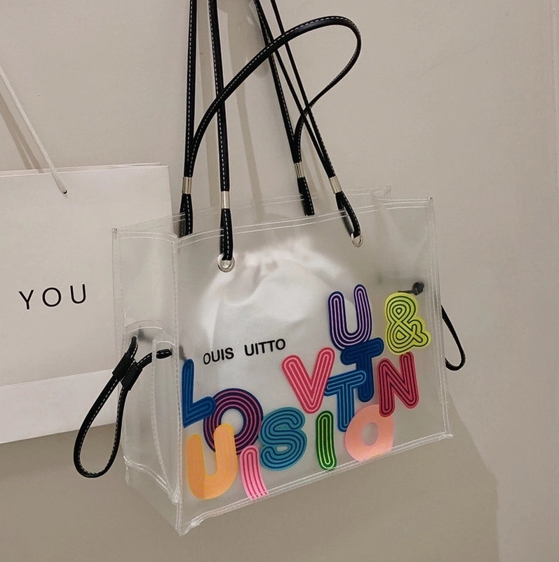 Be the first to review “Women’s Medium All Seasons Pvc Letter Fashion Transparent Square Tote Bag” Cancel reply